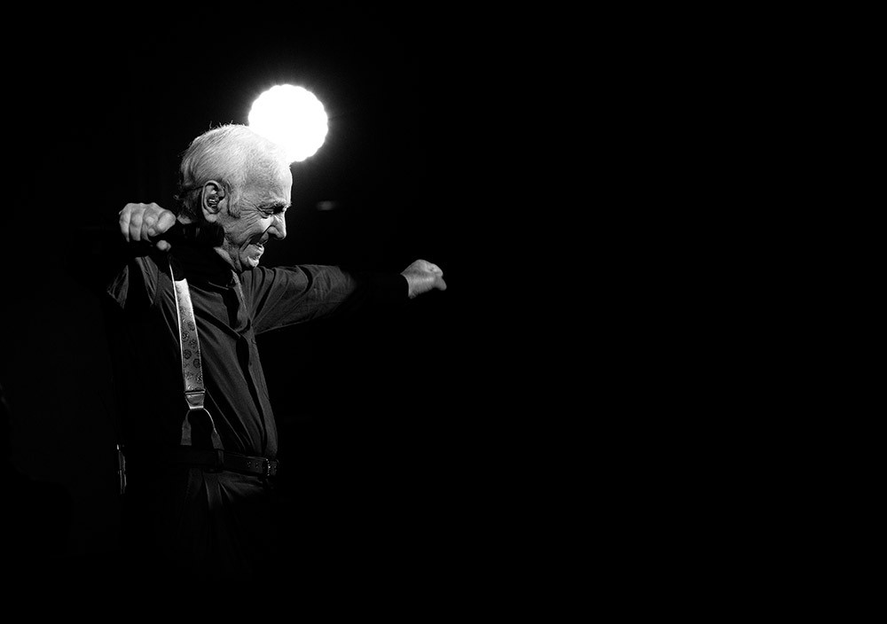 Սովորաբար համերգ նկարելիս մի տեղ կանգնում ես նկարում, հետո վազում մեկ այլ տեղ, հետո փորձում ես կուլիսներ մտնել, հետո վերևից… Այս անգամ էլ այդպես էի տրամադրված, մի տեղ կանգնեցի, մի քիչ նկարեցի ու հասկացա, որ այլևս ոչ մի տեղ չեմ ուզում գնալ, որ ոչ մի բան չեմ կարող անել, որ նկարը դառնա ավելի լավը, ավելի լավը, քան ցանկացած նկար, որի մեջ ուղղակի Ազնավուրը կա։ Էդպես մի կադր ստացվեց՝ Ազնավուրը ծաղիկները ձեռքին կանգնած է բեմի եզրին, իսկ մյուս կողմում երևում են հանդիսատեսների ձեռքերը՝ մթության միջից դեպի նա պարզած: Դա փոխաբերական իմաստով ես եմ, դա իմ վերաբերմունքն է Շառլին: