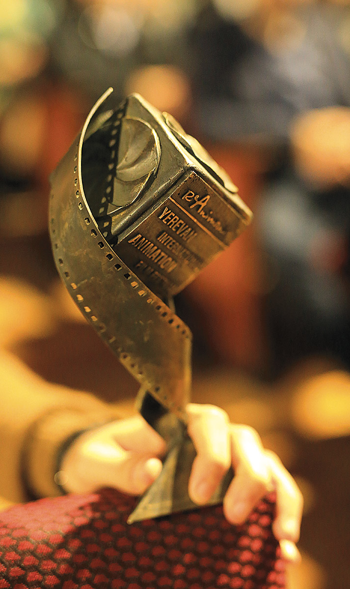 Կոմպոզիտոր Տիգրան Մանսուրյանին «Անիմացիոն արվեստում նշանակալի ներդրման համար» մրցանակը հանձնելիս, 2018