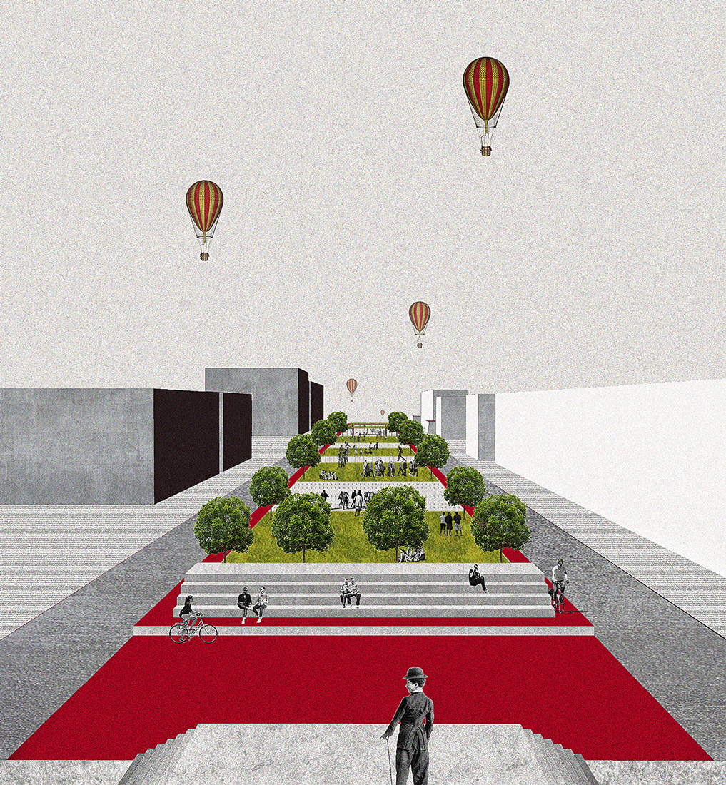 Ողջ հայեցակարգը հիմնական շեշտը հանրային տարածքի գաղափարի շուրջ է կառուցված: Տարածքն ինքն իրենով շատ լցված չէ տարբեր ծավալային էլեմենտներով, որ մարդիկ գան պարզապես դրանցով հիանալու: Այստեղ կարևոր են մարդիկ՝ մարդկանց շարժ լինի, իրենք որոշեն ինչպես օգտագործել այդ տարածքը: Այսինքն` առաջարկվում են հարթակներ,ֆունկցիաներ, կանաչ տարածքներ, որոնց ամենակարևոր էլեմենտը՝ «բանալին», մարդն է: