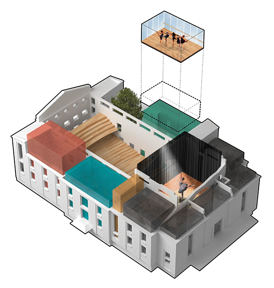 Շենքի դիմային և հետևում ընկած հատվածները կապվելու են ձվի տեսք ունեցող օվալաձև կառույցով, որը, կարելի է ասել, տեղադրվելու է հին կառույցի ներսում` հանդիսանալով միացնող օղակ: