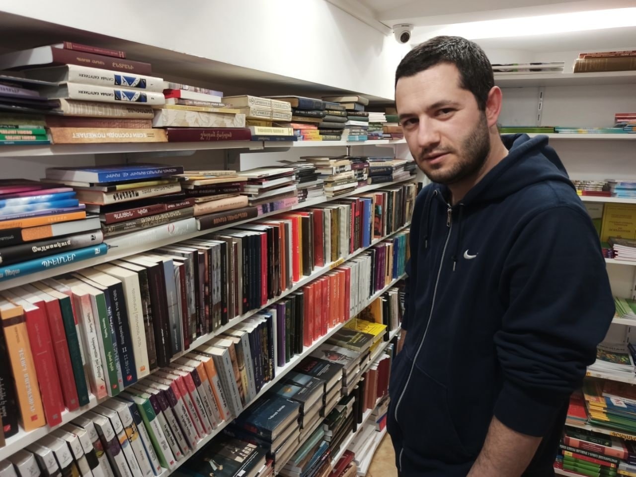 Մինչև «Նոյյան Տապանը» աշխատել եմ «Բյուրոկրատում», ինձ մոտ մի տեսակ վատ է ստացվում գրախանութում աշխատելը, որտեղ մտնում եմ՝ սկսում է փակվել, գուցե մի քիչ էլ ինձնից է: Երբ «Բյուրոկրատը» փակվեց, ինձ հրավիրեցին «Նոյյան Տապան». դա վեց տարի առաջ էր: Այն ժամանակ Կոմիտասում էր, հետո տեղափոխվեց Աբովյան 6: «Նոյյան Տապանը» միֆ էր դարձել, մանավանդ ավագ սերունդը գրախանութ բառը ասոցացնում էր Նոյյանի հետ ու էդ գովազդը, անունը մինչ հիմա էլ կա, որ այդտեղ կան աշխարհի բոլոր գրքերը, ամենալավ գրքերը, երևի որովհետև առաջիններից մեկն է եղել, կողքն էլ մի ժամանակ «Անի» անունով գրախանութ կար: