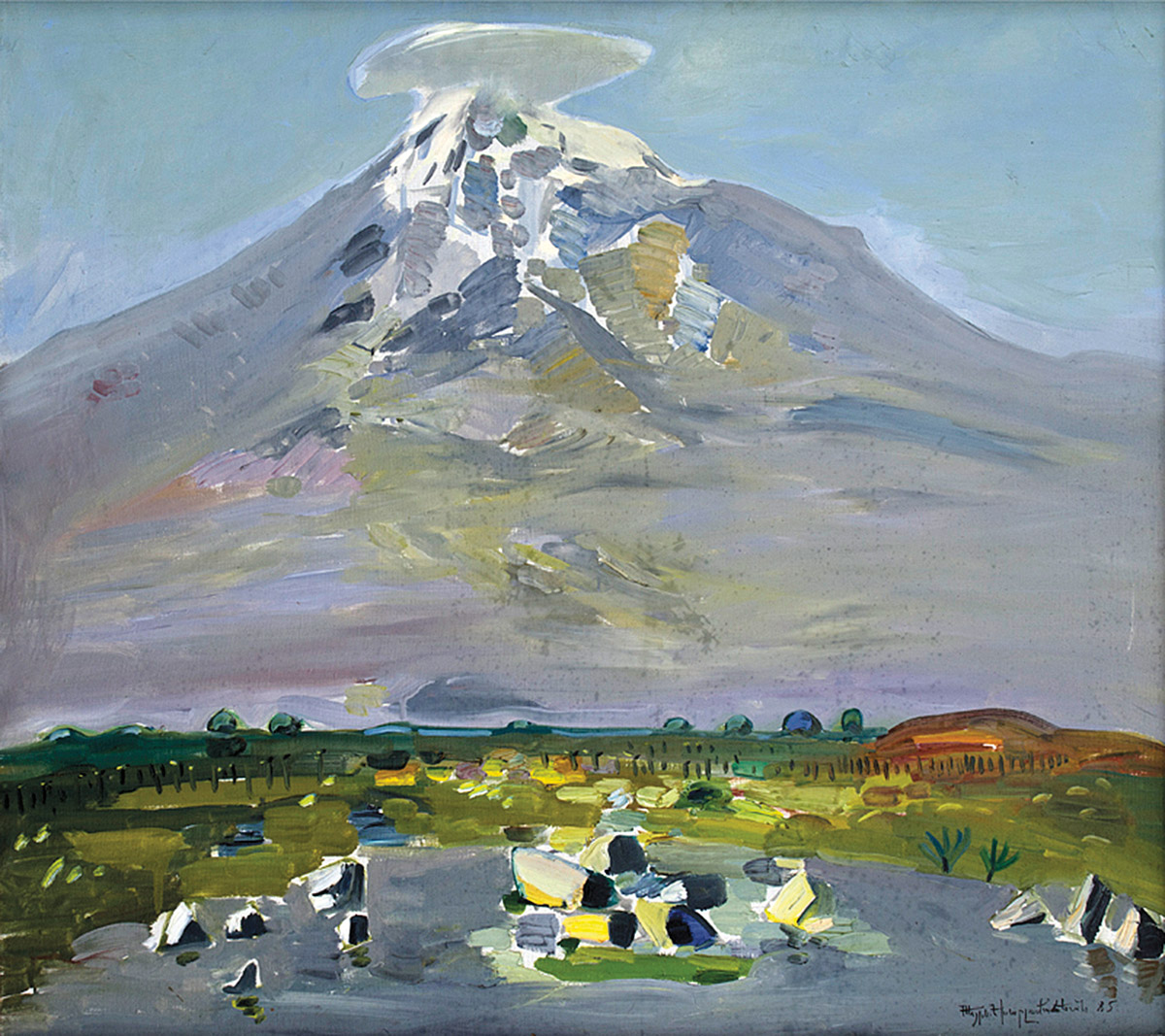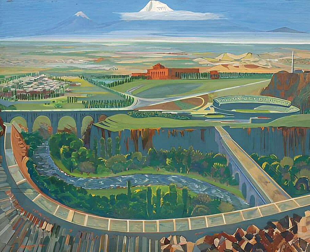 1978-ին Հակոբ Հակոբյանը ստեղծում է «Արարատը Սաղմոսավանքից» կտավը, որը հակոբյանական Հայաստանի ամենավառ օրինակներից է։ Դիտողի առջև «սավառնող» ձյունապատ Արարատն է, իսկ դիմացը՝ երկիրը ճեղքած կիրճը։ Հակոբյանը նկարում է Հայաստանը վաղ գարնանը կամ ուշ աշնանը՝ այդ եղանակին հատուկ զուսպ գունապնակով։ Ռուբեն Գրիգորյանի 1987-ի «Խնդիր, պրոբլեմ» կտավում Արարատյան դաշտում կյանքը շարունակվում է՝ չնայած անլուծելի թվացող խնդրի առկայությանը։