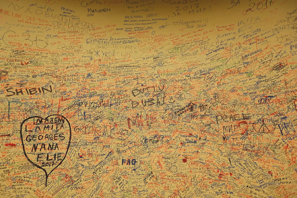 Թանգարանի մի պատին հնեցման տարբեր աստիճան, և, հետևաբար, ոսկեգույնի տարբեր երանգներ ունեցող կոնյակներով հավաքված է Առնո Բաբաջանյանի «Նոկտյուրնի» մեղեդին: Մի ուրիշ անկյունում Սիլվա Կապուտիկյանի նամակն է Մարտիրոս Սարյանին, որում բանաստեղծուհին գրում է, որ Հայաստանի հարստությունը Սարյանի նկարներն ու ARARAT կոնյակն են: Ի դեպ, նամակի կողքին կարելի է տեսնել նաև Սարյանի ճեպանկարներից մեկը: Մի քիչ ներքևում էլ ARARAT-ի մրցանակների մեծ հավաքածուն է, այդ թվում՝ հեղինակավոր San Francisco World Spirits Competition-ի ոսկե մեդալը: Ի դեպ, 2016-ին Հայաստանը առաջին անգամ էր մասնակցում մրցույթին, և հենց առաջին տարում Երևանի կոնյակի գործարանը նվաճեց գլխավոր մրցանակը:
