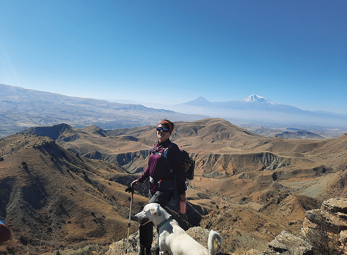 «Արարատյան առաքելությանս» մյուս խորհրդանիշը դարձավ շունս՝ Չիման, իմ արշավական ընկերը: Մի քանի ամիս ամեն օր միասին 16 հարկ ոտքով իջնում էինք, գնում այգի, ես պարապում էի, պարան թռնում, վազում Չիմայի հետ: Ինձ շատ օգնեց: Երբ վերելքի համար արդեն մեկնել էինք երկրից, տեսազանգով տուն զանգեցի: Շան համար անսովոր էր իմ այդքան օրվա բացակայությունը, որովհետև համավարակի ընթացքում երկրից դուրս չէի եկել: Հեռախոսի այն կողմից կանչեցի՝ Չիմա՜, Չիմա՜, մոտ վազեց ու սկսեց լպստել էկրանը: Իսկ թե ոնց դիմավորեց տուն մտնելիս, աննկարագրելի է: