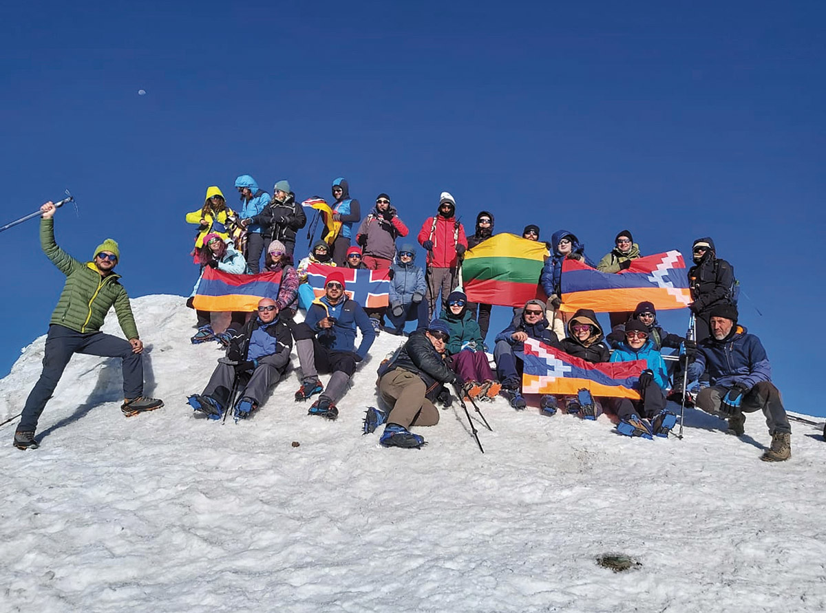 Հաջողված վերելքի մասին առաջինն իր հետ ուզեցի կիսվեմ։ Իջնելուց հետո զանգեցի, հեռախոսի մյուս կողմից ասաց՝ «հպարտանում եմ քեզնով»: Շատ կուզեի անձամբ, աչքերին նայելով ասել, հասկանալ՝ ինչ զգաց այդ պահին։ Գագաթից նկար ուղարկեցի Վահեին՝ «հալալ ա, շնորհավոր»: Արային էլ խոստացած նկարն ուղարկեցի: Մեր 28 հոգանոց ինտերնացիոնալ խմբից գագաթ հասան բոլորը. ամենաերիտասարդը 14 տարեկան էր, ամենամեծը՝ 58: