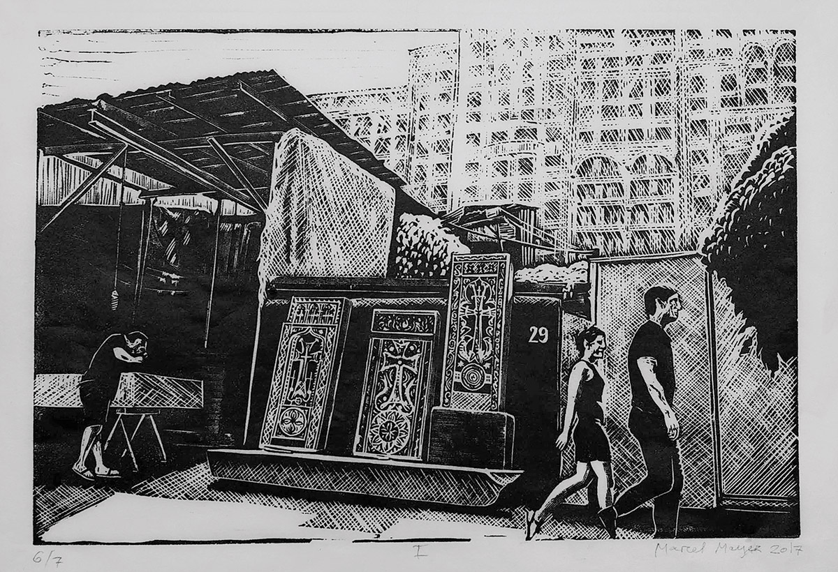 2017 թվականին շվեյցարացի նկարիչ Մարսել Մայերը վեց ամսով ժամանեց Երևան, որի արդյունքում իր բազմաշերտ տպավորություններն արտահայտեց լինոփորագրությունների շարքի մեջ։ Ներկայացնում ենք դրանց մի մասը և հեղինակի ուղեկցող մեկնաբանությունները Land of Plenty ալբոմից։