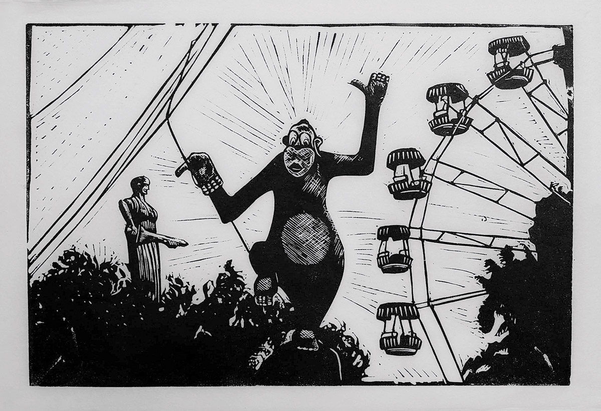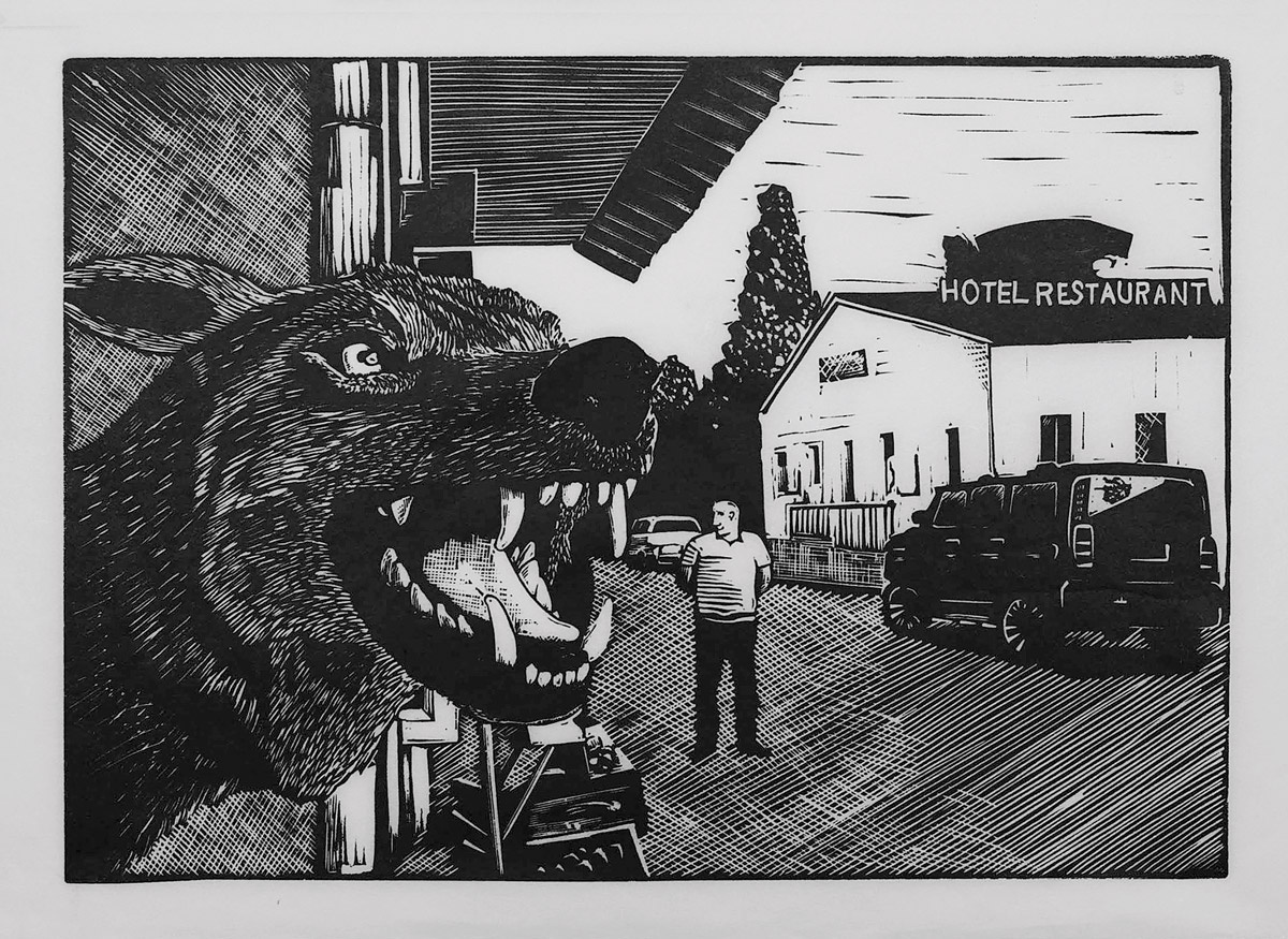 Լուսանկարը, որի հիման վրա կատարել եմ լինոփորագրությունը, արվել է 1973 թվականին։ Այդ ժամանակ Գրողների տունը տեղական էլիտայի ու միջազգային գրական աստղերի հանդիպման վայր էր։ Սիմոնա դե Բովուարը, Ժան-Պոլ Սարտրը և շատ ուրիշներ հյուրընկալվել են այստեղ։