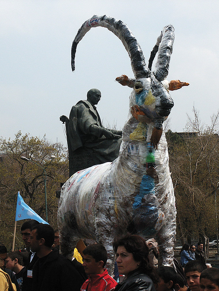 Մի քանի անգամ փառատոնի շրջանակում անցկացրեցինք թափոններից պատրաստված կենդաների քանդակների ցուցադրություն, տեղադրեցինք Երևանի տարբեր մասերում՝ կինո «Մոսկվայի» դիմաց, Սիրահարների այգում և այլն։ Այդ շարքն էկո-ակումբների աշխատանքի բնական շարունակությունն էր։ Դրանց բազայի վրա ստեղծեցինք Կանաչ դպրոց ծրագիրը, ու դպրոցի բոլոր աշակերտները ներգրավվեցին դրա մեջ։ Երեխաներն իրենք էին հայթայթում հումքը՝ իրենց տներից, հարևաններից, համոզում էին, որ պլաստիկ շշերը աղբը չնետեն։ Ու հետո արդեն այդ ամենից վտանգված կենդանիներին ստեղծեցին։