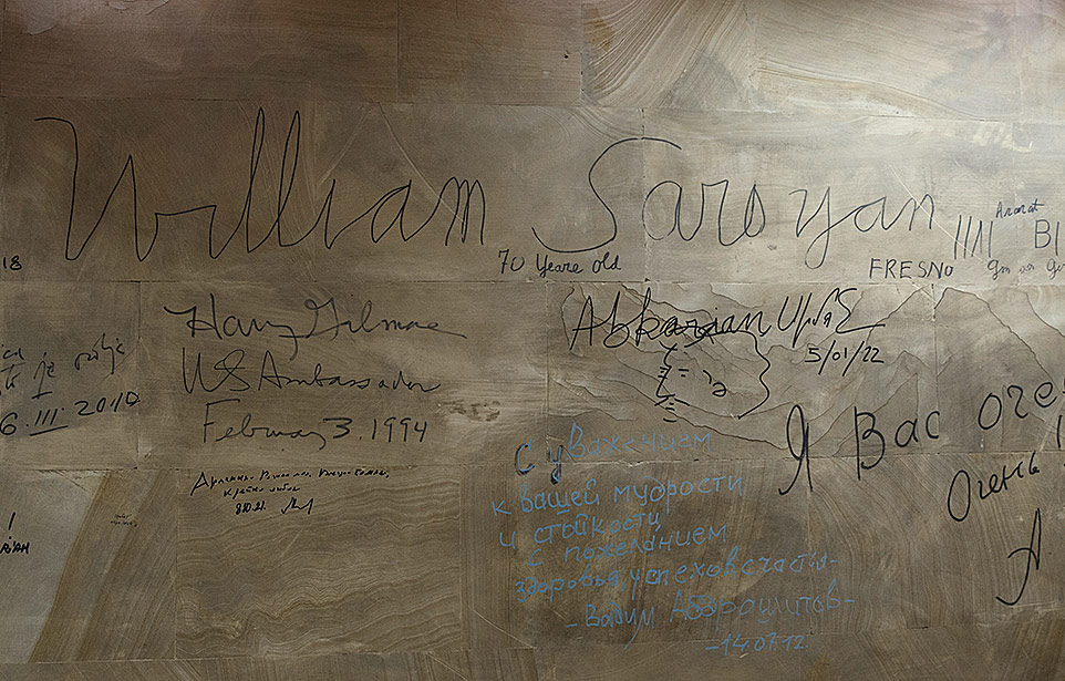 1977 թվականին պատին ավելացան Ուիլյամ Սարոյանի ու Արամ Խաչատրյանի ստորագրությունները։ Ամենահետաքրքիրը, որ այժմ սրահում այդ ստորագրություններից բացի կարելի է տեսնել նաև ականավոր հյուրերի՝ նույն միջավայրում։
