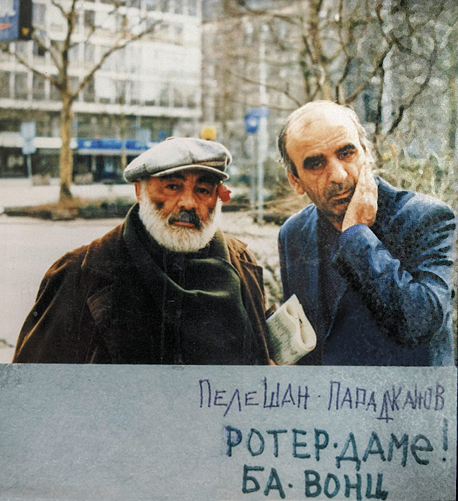 Փարաջանովի ու Փելեշյանի լուսանկարը Ռոտերդամից (Փարաջանովի մակագրությամբ) զարդարում է Կինոյի տան պատը