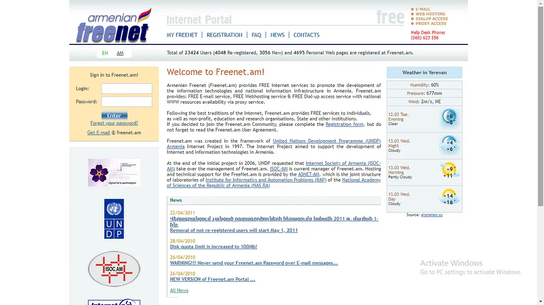 1995-ին ես ու Արթուրը Հարությունյանն աշխատում էինք ՄԱԿ-ում: Որպեսզի ավելի լավ պատկերացնեք, թե ինչ ժամանակներ էին, միայն ասեմ, որ Հայաստանում վեց հատ էլեկտրոնային փոստ կար, մեկը՝ ՄԱԿ-ինն էր: Ինչ որ է, մի լավ կոնսուլտանտ կար ՄԱԿ-ում՝ Ռաֆալ Ռոզինսկի, Լեհաստանի հրեա էր՝ շատ խելացի ու հեռատես: Ինքն էր, որ ինձ պատմեց, որ Նյու Յորքում մի ինչ-որ նոր ծրագիր են բացել, որի շրջանակում Ուկրաինայում սկսել են Freenet կոչվող նախագիծը՝ մարդկանց ծանոթացնում են ինտերնետի հետ, դասընթացներ անում՝ առանձնապես ոչինչ, մանր բան էր: Ռաֆալն էլ ասեց՝ արի ես քեզ օգնեմ, նախագիծ գրենք, դիմենք, թող Հայաստանի համար էլ ֆինանսավորեն: Ու հիմա որ մտածում եմ, հասկանում եմ, որ շանս չուներ նախագիծը, որովհետև ՄԱԿ-ի համար սովորական չէր: Բայց բախտներս բերեց, որ Հայաստանի գրասենյակում ինչ-որ խառը վիճակներ էին, ղեկավար չկար, մի խոսքով, Ռաֆալի Նյու Յորքի ծանոթների օգնությամբ հաստատվեց: Ամենածիծաղելին, որ մենք հեռուստացույցից՝ լուրերից իմացանք, որ ֆինանսավորել են նախագիծը: