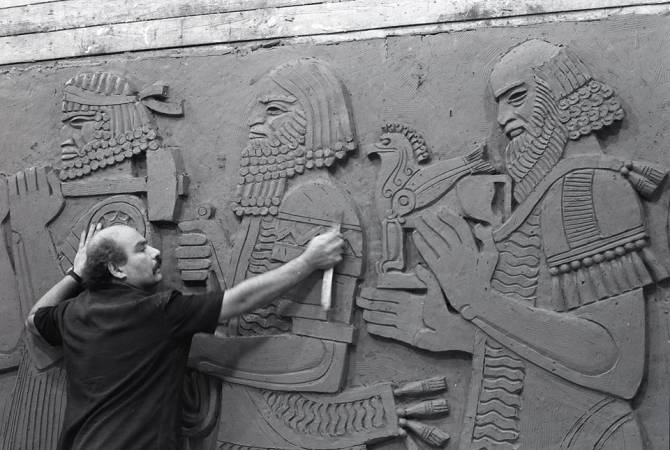 Ջիլմա Մադերան և Արմանդո Չինկան` քանդակի վրա աշխատելիս
