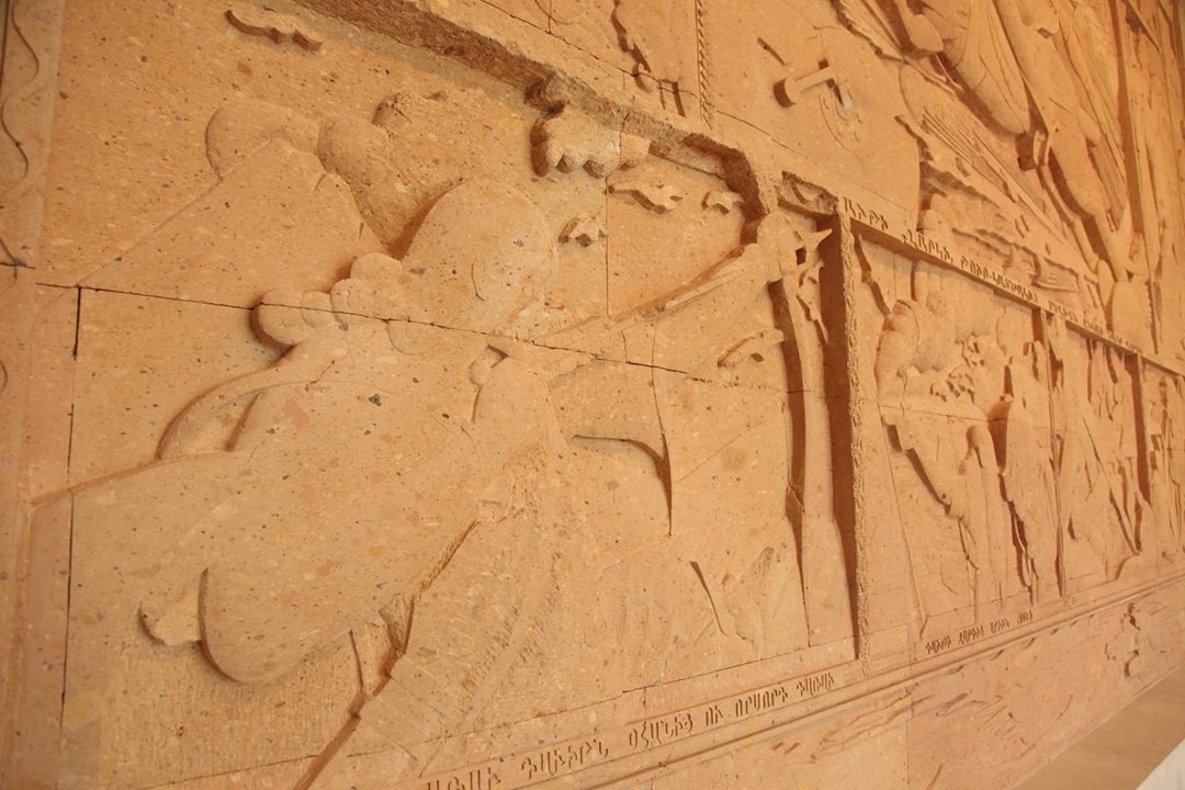 «Սասունցի Դավիթ» որմնաքանդակը նկարիչ Հակոբ Կոջոյանի 1922 թվականին ստեղծված հայտնի համանուն գրաֆիկական աշխատանքի քանդակային տարբերակն է՝ յուրաքանչյուր կողմը 15 անգամ մեծացված: Սակայն, ինչպես շեշտում է Արմեն Եսայանցը, Արտաշես Հովսեփյանը հանդես չի եկել զուտ նմանակողի կամ «թարգմանչի» դերում։ «Նրան հաջողվել է Կոջոյանի հեղինակած փոքրածավալ ջրաներկ ստեղծագործությունը փոխանցել քարի մեջ այնպես, որ բոլոր մանրամասներն ավելի ցցուն ներկայանան դիտողին: Այս մոնումենտալ ռելյեֆի գեղարվեստական արժեքը նրանում չէ, որ սա Կոջոյանի ստեղծագործության քարե կրկնօրինակն է։ Որմնաքանդակում այդ ստեղծագործության մանրամասներն է՛լ ավելի ակնառու են դառնում, իսկ ֆիգուրներից յուրաքանչյուրի տեղն ու դերն աշխատանքում՝ ավելի ակնհայտ ու տպավորիչ, այսինքն՝ Կոջոյանի գործում արդեն իսկ ներկա մոնումենտալությունն ավելի է ընդգծվում՝ շնորհիվ տուֆի մեջ մարմնացած պատկերի», — մեկնաբանում է Եսայանցը՝ բացատրելով, որ դա նկատվում է հատկապես մանրամասների մշակման աստիճանի մեջ, որովհետև եթե որմնաքանդակն ավելի մանրակրկիտ մշակման ենթարկվեր, այն կտուժեր, կկորցներ իր՝ որպես ամբողջական պատկեր ընկալվելու հատկությունը։ Ու թեև որմնաքանդակն անավարտ է մնացել, այդուհանդերձ այն փոխանցում է ստեղծագործության մոնումենտալ հնչեղությունը՝ տպավորելով իր մասշտաբներով, կատարման վարպետությամբ ու տուֆի՝ աչք շոյող ջերմությամբ։