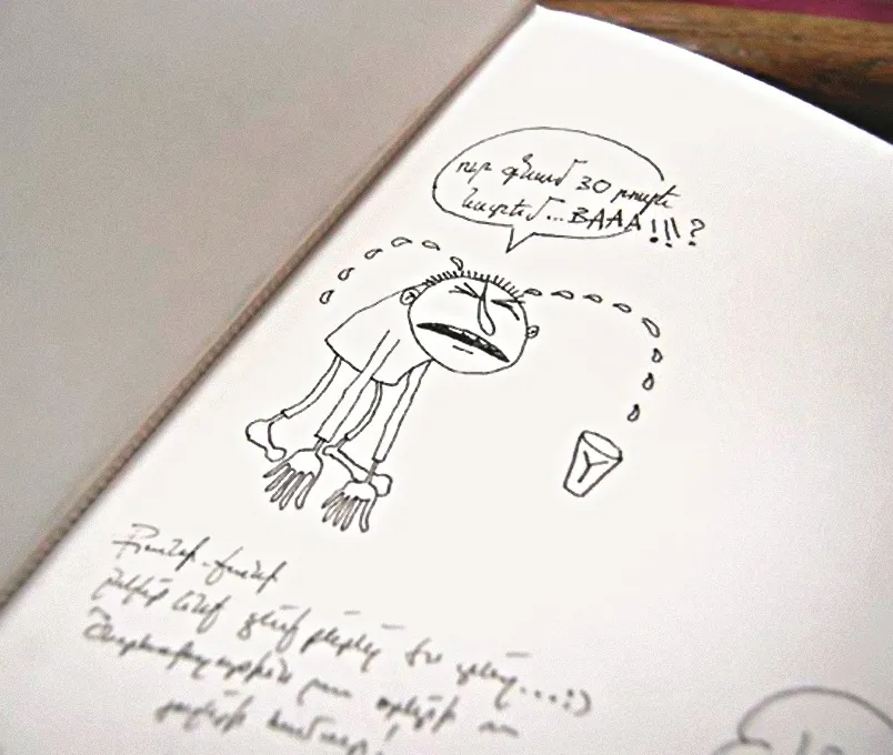 Մի պահ եկավ, երբ «Յամ-Յամի» այցելուներն այնքան շատացան, որ անհնար դարձավ բոլորին ընդունելը: Որոշվեց, որ քանի որ «Յամը» արագ սպասարկման սրճարան է, այնտեղ գտնվելու առավելագույն ժամանակահատվածը 30 րոպեն է: Այդ մասին հայտարարություններ փակցվեցին բոլոր սեղաններին: Հաճախորդները հենց այդ հայտարարությունների թերթիկների վրա սկսեցին արտահայտել իրենց բողոքները’ 30 րոպեն թղթի վրա դարձնելով 130, 230, կամ 80 կամ «տնօրինություն» բառի Տ-ն’ Ա, արդյունքում ստանալով անօրինություն:
