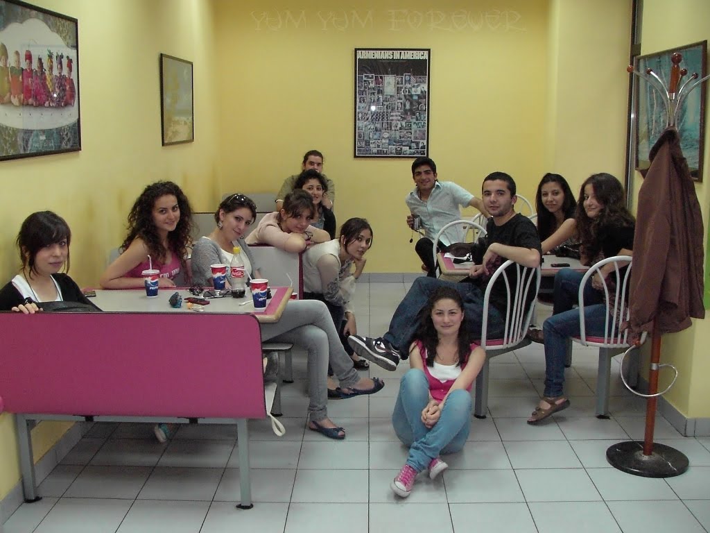 Երևանում դեռ մութ ու ցուրտ, անլույս ու կիսասոված տարիների ստվերն էր, երբ 1997 թվականի դեկտեմբերի 9-ին Մաշտոցի պողոտայում բացվեց այն ժամանակվա երևանյան իրականության հետ ոչ մի կապ չունեցող «Յամ-Յամ Դոնաթս» սրճարանը: Տերը Թորոսն էր Նյու Ջերսիից, երևի այդ պատճառով էլ դիզայնն անսովոր էր՝ այդպիսին միայն ամերիկյան ֆիլմերում էինք տեսել: Դեղնավուն պատեր, մոտ վեց հոգու համար նախատեսված վարդագույն սեղաններ ու արծաթագույն աթոռներ, որոնց շուրջ հենց վեց հոգով էլ նստում, մեկ սուրճ ու կոլա պատվիրում և ժամերով խոսում, գոռգոռում, ծիծաղում էինք: Ապակեպատ դռան կողքին կախիչներն էին, որ ձմռան ամիսներին կորում էին բաճկոնների ու վերարկուների տակ, պատերին’ մեծ չափի վառ գույներով լուսանկարներ: Մուտքի դիմաց համով դոնաթների ու սուրճերի վաճառասեղանն էր: Կար, սակայն, մի անհարմարություն. «Յամում» զուգարան չկար, ու այցելուներն իջնում էին հարևանությամբ գտնվող «Ջինսնոց» սրճարանն ու օգտվում նրանց զուգարանից: Բայց մի՞թե դա կարող էր խնդիր համարվել…