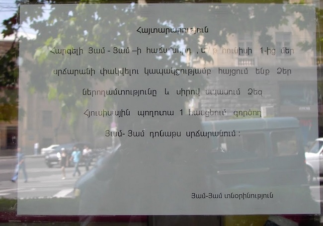 2010 թվականին քաղաքում իսկապես սկսեցին տարօրինակ լուրեր պտտվել, իսկ մի օր էլ երևանցիները անմահ թվացող սրճարանի ապակեպատ դռանը հայտարարություն կարդացին. «Հարգելի «Յամ-Յամի» հաճախորդ. ս/թ հունիսի 1-ից մեր սրճարանը փակվելու կապակցությամբ հայցում ենք Ձեր ներողամտությունը և սիրով սպասում Ձեզ Հյուսիսային պողոտա 1 հասցեում գործող «Յամ-Յամ դոնաթս» սրճարանում…»: