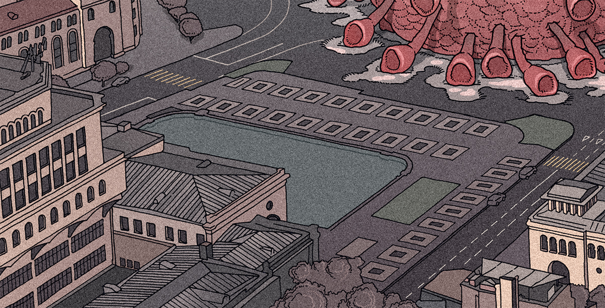 Դավիթ Յուխանյանը բացատրում է, թե ինչու է պատկերել այն, ինչ պատկերել է․ «Ինչ-որ մի շրջան եկավ, որ սկսեցի պատկերացնել և հավատալ, թե մարդկանցից բացի, վիռուսով վարակվում է նաև մեր քաղաքը՝ համապատասխան իր մասշտաբների։ Պատկերացրեցի, եթե մարդկային օրգանիզմում վիրուսը ունի իր որոշակի ֆիզիկական չափսերը, ապա քաղաքային օրգանիզմում դրա չափսերը համապատասխանում և համամասնական են քաղաքի ֆիզիկական չափսերին՝ լինելով է՛լ ավելի մեծ, ավելի արտահայտիչ ու զարմանալի՝ այդ քաղաքի մարդկանց ընկալման համար։ Այնպես, ինչպես մարդու օրգանիզմում ապրող մանրէների ընկալման համար է արտահայտիչ ու զարմանալի մարդկային վիրուսի չափսերը, երբ նրանք՝ մանրէները, յուրաքանչյուր անգամ հանդիպելուց այդ մարդկային վիրուսին՝ ստանում են նույն տպավորությունները, որոնք կստանային մարդիկ, եթե հանդիպեին ենթադրյալ քաղաքային վիրուսին՝ Հանրապետության հրապարակում։ Եվ իհարկե, այդ շղթան անվերջ կարելի է շարունակել դեպի ավելի մեծ, կամ ավելի փոքր մասշտաբներ։»