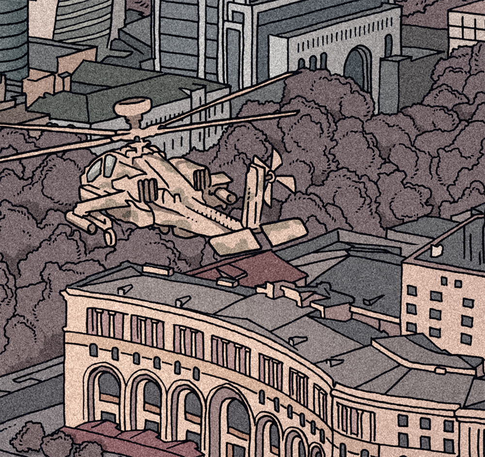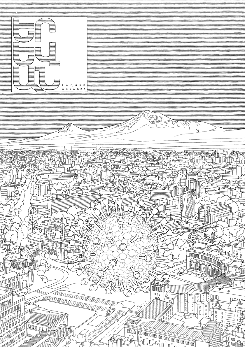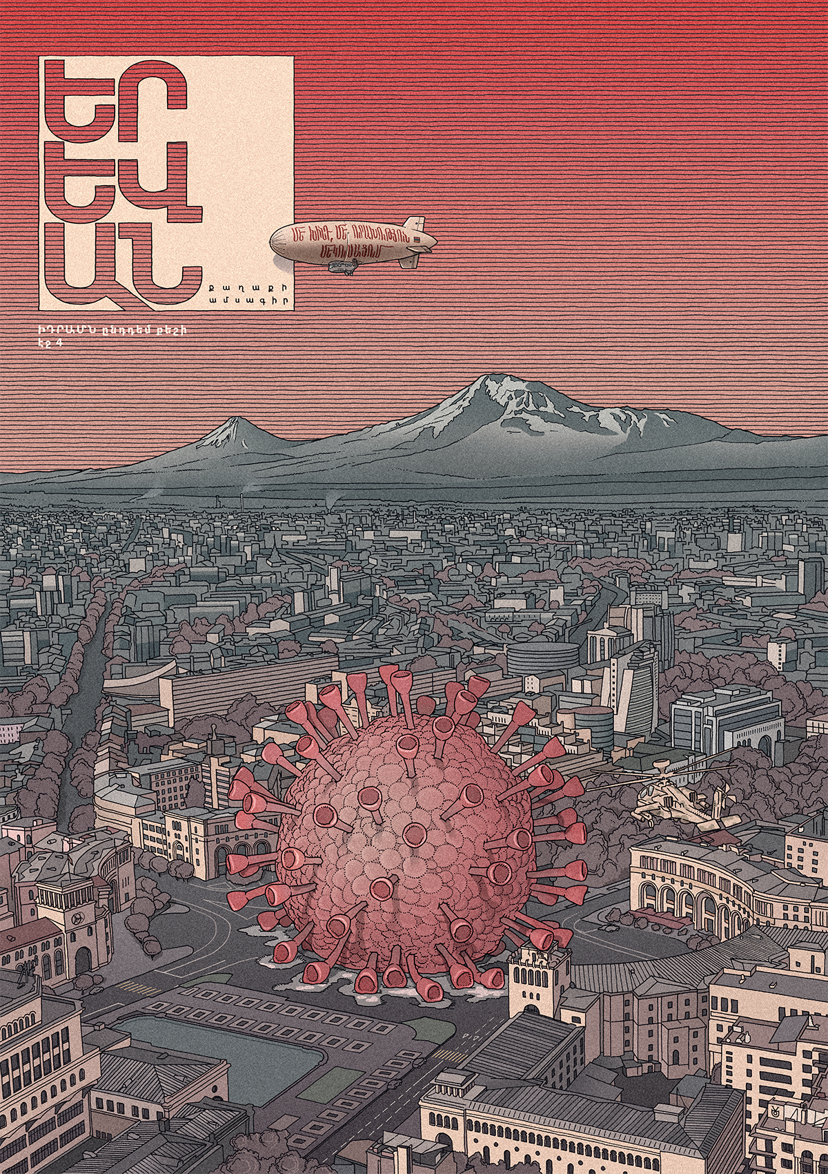 ԵՐԵՎԱՆի նոր շապիկի վրա քովիդի գերին դարձած Երևանն է։ Նկարազարդել է Դավիթ Յուխանյանը։