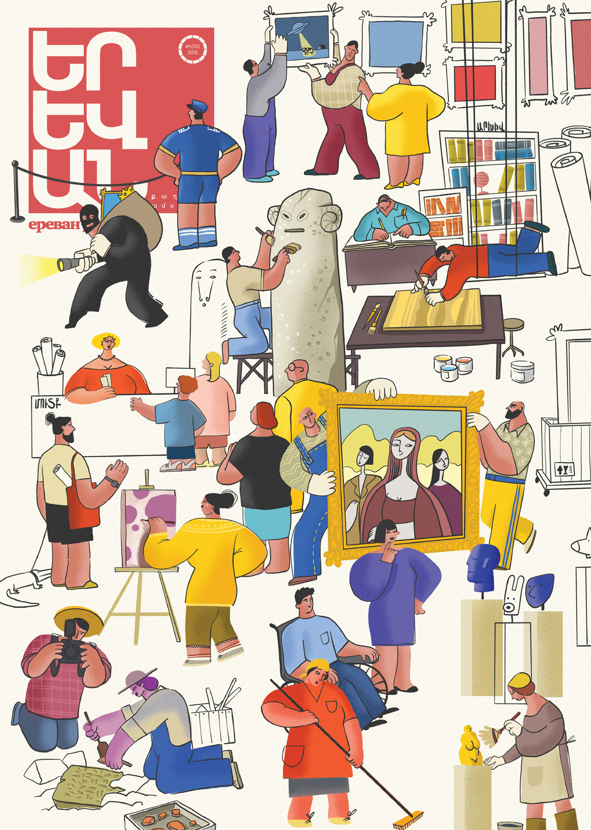 ԵՐԵՎԱՆի նոր համարը նվիրված է Երևանի թանգարաններին։ Նկարազարդող Հարություն Թումաղյանը բացատրում է, թե ինչու է իր ձևավորած շապիկն այսքան մարդաշատ․