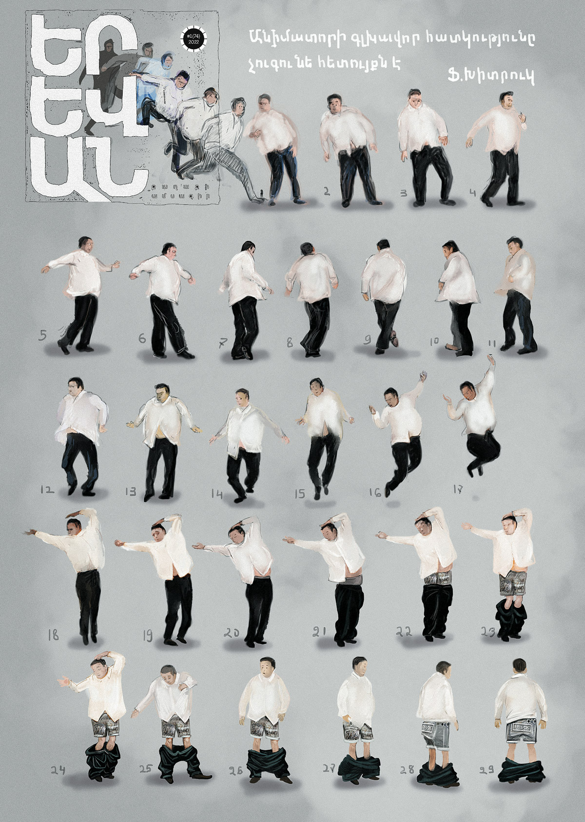 Նաիրայի թեթև ձեռքով ԵՐԵՎԱՆի շապիկը վերածվեց երևակայական անիմացիոն ֆիլմի մի կերպարի պարահրապարակի։ Շապիկի կառուցվածքն ավելի լավ պատկերացնելու համար, Մուրադյանը բացատրում է ավանդական անիմացիայի հիմունքները․ «Նախ՝ անիմատորը տալիս է շարժման կարևոր նկարները՝ «կոմպանովկաները», որից հետո գործին միանում է «ֆազովշիկը», որը փուլավորում է դրանք, ավելացնելով «կոմպանովկաների» միջև ընկած նկարները»։