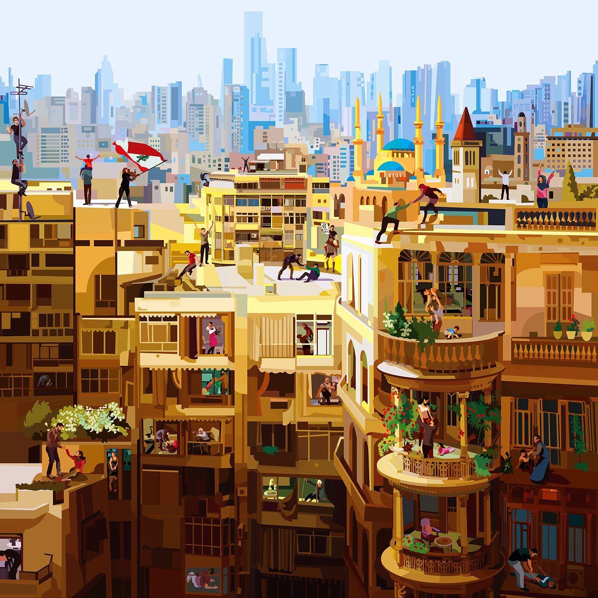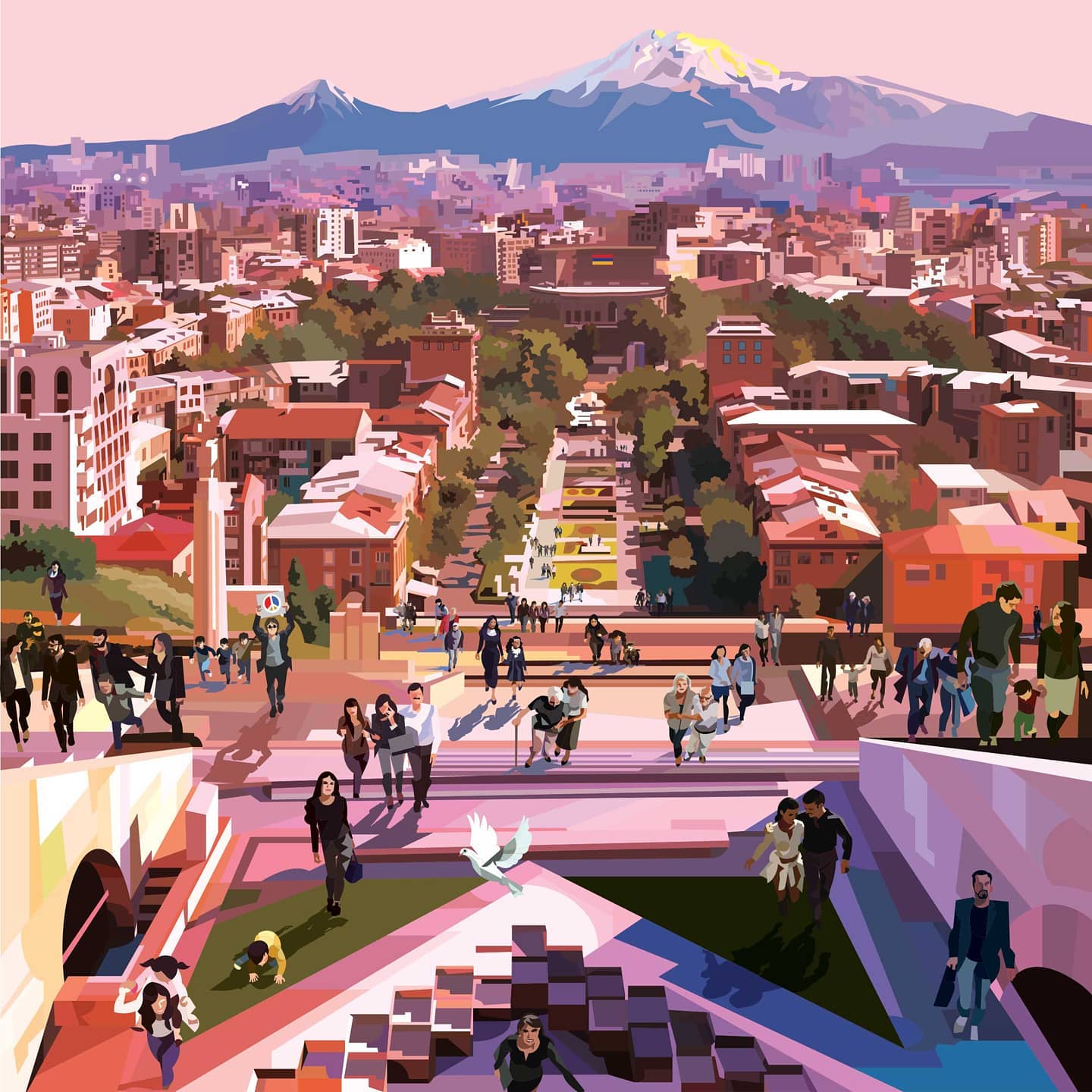 Կասկադն ու երևանցիները՝ իտալացի նկարչի նոր աշխատանքում։
