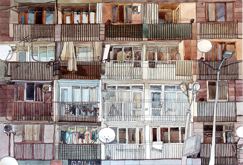 Ինձ պատշգամբները շատ են դուր գալիս, որովհետև ազատության հետ եմ կապում, ով ինչպես կարողանում է, կառուցում է, թվում է՝ ինքնաարտահայտման ձև է: Ստացվում է ինչ-որ խճանկար, շատ քարեր են օգտագործված, իսկ դրանց գույներն ու տեսքն անհավանական գեղեցկություն ունեն: Դրան գումարած՝ մարդիկ ապրում են այդտեղ, զարգացնում են և դա էլ իր հերթին է գեղեցկացնում: Ես այդ ամենը տեսնում և հիանում եմ դրանով՝ կարմիր կապույտ վարդագույն… Եվ այդ ամենը ես այնպես եմ ուզում նկարել, ամեն ինչ ուզում եմ նկարել: