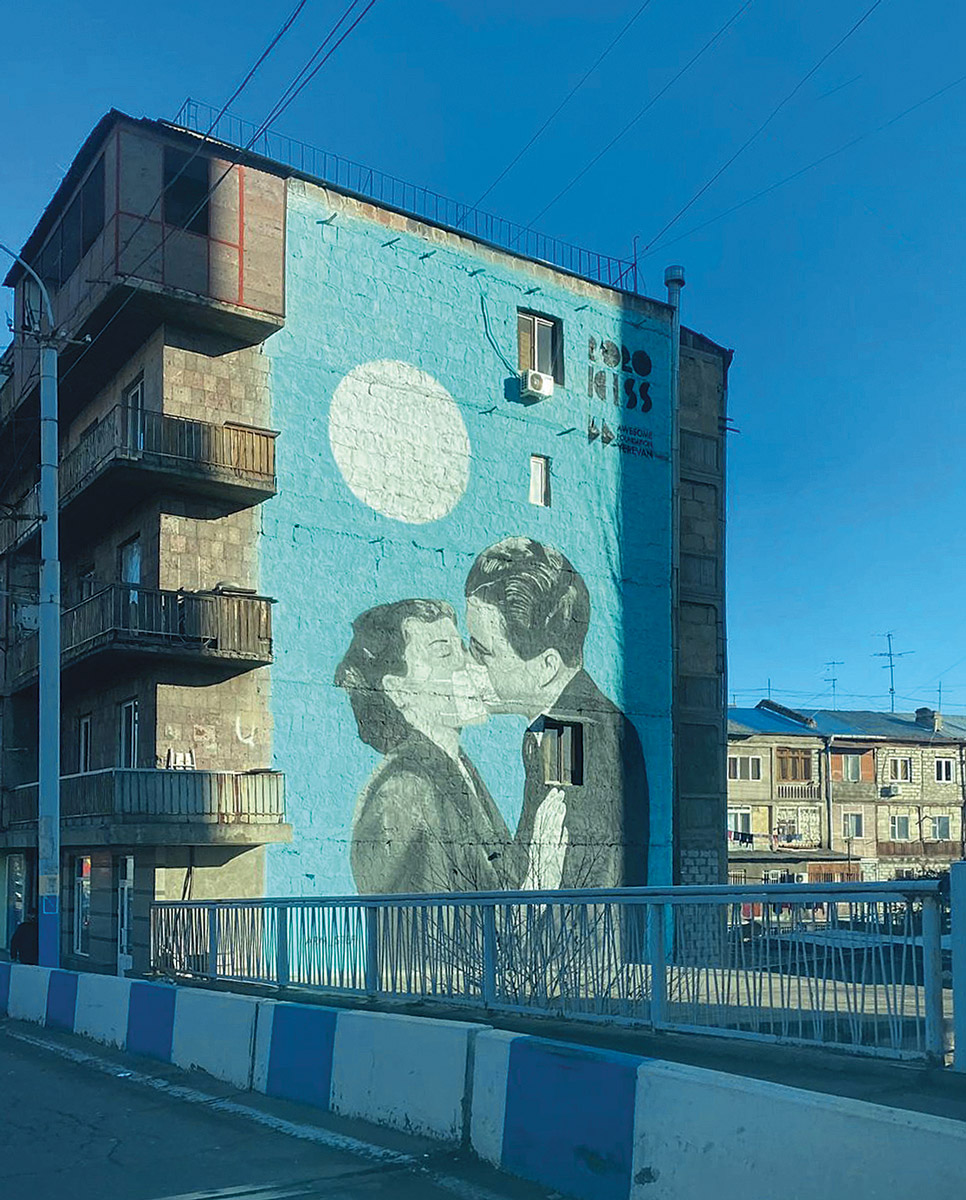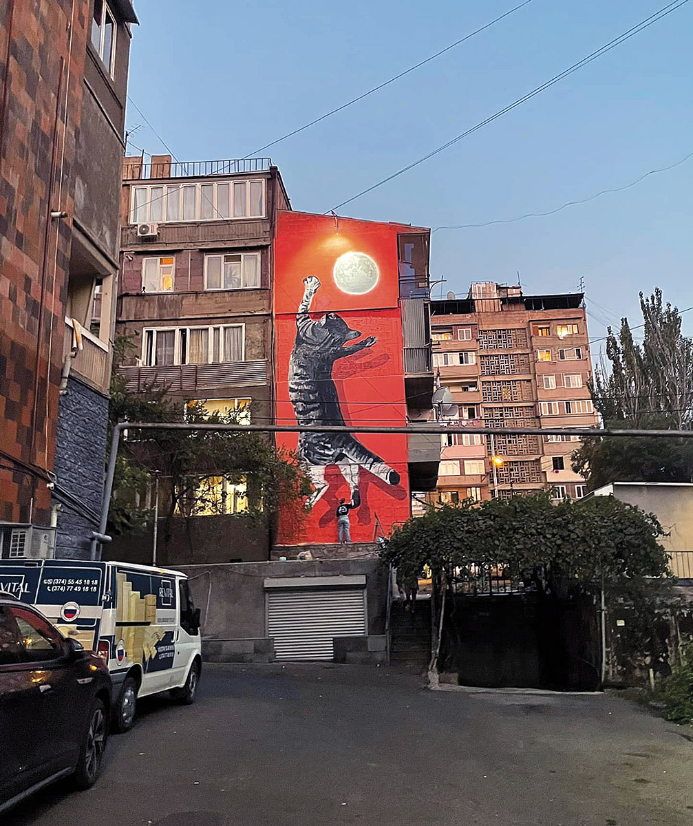 Ավանդապաշտ Երևանը բառացիորեն ցնցվեց, երբ նրա պատերին հայտնվեց «Համբույր-2020»-ը: Միջավայրի դիզայներ Արման Ստեփանյանն իր 140 քմ ահռելի պատկերի համար ընտրեց «Վստրեչի» կամրջի կողքի շենքի պատը: Ասել, որ բնակիչները երջանիկ էին, սուտ կլիներ: Բայց սիրահար համբուրվող զույգերին դա չէր կարող խանգարել, ինչպես և հոգ չէր քովիդի ժամանակ պարտադրված դիմակը, որով նրանց պատկերել էր նկարիչը։ Արմ Ստեփանյանի մեկ այլ մոնումենտալ աշխատանք զարդարում է Հրաչյա Քոչար փողոցի շենքերից մեկի պատը: «Ցատկող կատուն ու լուսինը» առավել անցավ ընդունվեց, հավանաբար, շենքի բնակիչները կենդանասեր են: