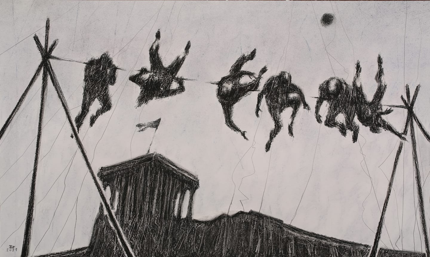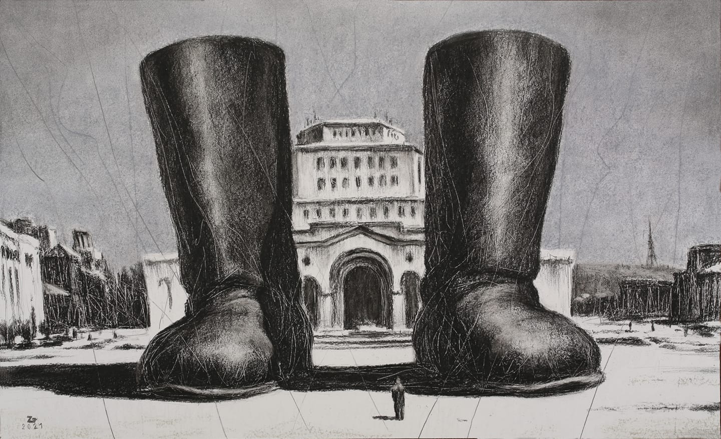 Մատիտով, ածուխով ու պաստելով արված այս շարքի հիմնական մոտիվները Հայաստանի նորագույն պատմության, մասնավորապես մայրաքաղաք Երևանում տեղի ունեցած դեպքերն են, դրանց հետ կապված լեգենդներն ու միֆերը, որոնք ստեղծվել, տրանսֆորմացվել ու մի քաղաքացուց մյուսին փոխանցվել են վերջին 30 տարիների ընթացքում։ «Տուրիզմով երկիրը կպահենք», հոգևոր դասի ու գեներալիտետի անթույլատրելի վարք, հոկտեմբերի 27, մարտի 1, պատերազմ․ այդ ու շատ այլ պատումների, տարածվող լեգենդների, ստի ու իրականության գրոտեսկային ու աբսուրդի հասցված մեկնաբանությունն են Սերգեյ Նարազյանի աշխատանքները։
