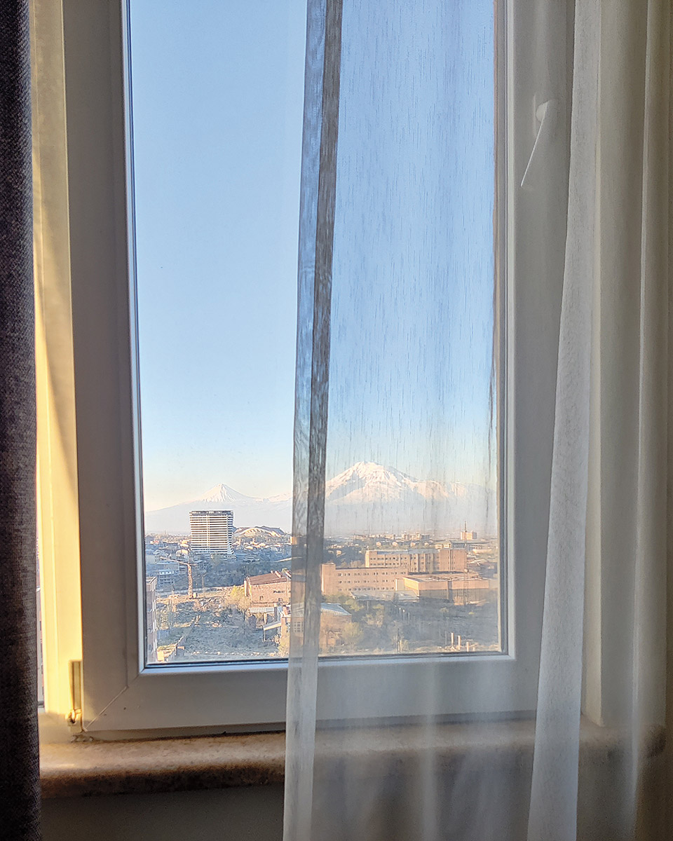 Որպես ռոմանտիկ սփյուռքահայ՝ կարևոր էր, որ տնից Մասիսը երևա: Թեև չէի ասի՝ այդքան էլ կարևոր է, որ ամեն օր նայեմ սարին, բայց նկատել եմ՝ կան եղանակներ՝ հատկապես արևածագի ժամանակ, շատ գեղեցիկ գույներ են ստեղծվում սարի շուրջը: Դրա համար շատ շուտ պետք է արթնանալ՝ 05:30, որ այդ պահը բռնացնես։ Մի քանի անգամ անգիտակցաբար ինքս ինձ բռնացրել եմ, որ շուտ արթնանում եմ, որպեսզի գնամ տեսեմ այդ ամենը...