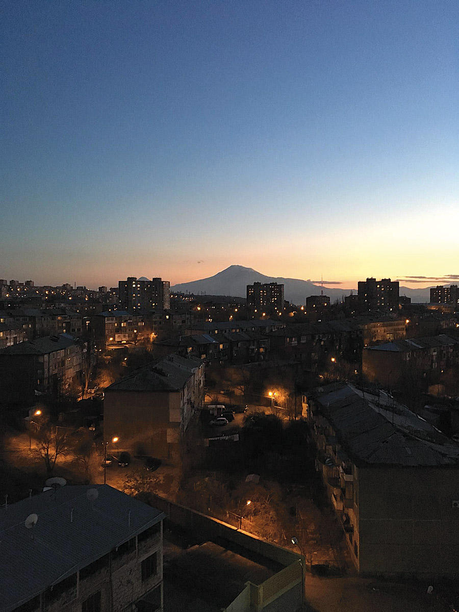 Ամերիկյան համալսարանի հետևի կողմում մի թաքնված տեղ կա, այդտեղ եմ ապրում՝ վեցերորդ հարկում և սարն ամբողջությամբ երևում է: Լսում էինք, որ սփյուռքահայերն էին միշտ «Մասիսով տուն» գնում, բայց իրականում երբեք չեմ մտածել, որ դա ինձ համար էլ կարևոր կլինի կամ արժեք կարող է ներկայացնել: Ուղղակի էդպես ստացվեց, և հետո միայն արժևորեցի նրա գեղեցկությունն ու ներկայությունն իմ տեսադաշտում: