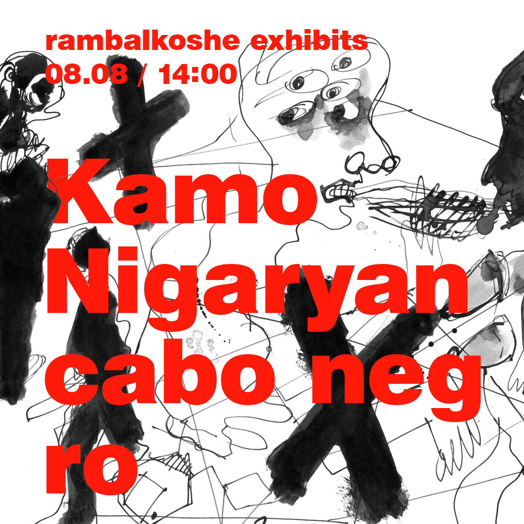 Առաջիկայում գնալու առիթն արդեն կա։ Ընդամենը երկու օրից, հենց իր հարկի տակ Rambalkoshe-ն կցուցադրի Կամո Նիգարյանի կյանքի վերջին տասնամյակում՝ 2000-2011թթ․ ստեղծված գրաֆիկական աշխատանքները՝ «Կաբո նեգրո» ցուցահանդեսով։ Շարք, որը դեռ երբեք չի ցուցադրվել։