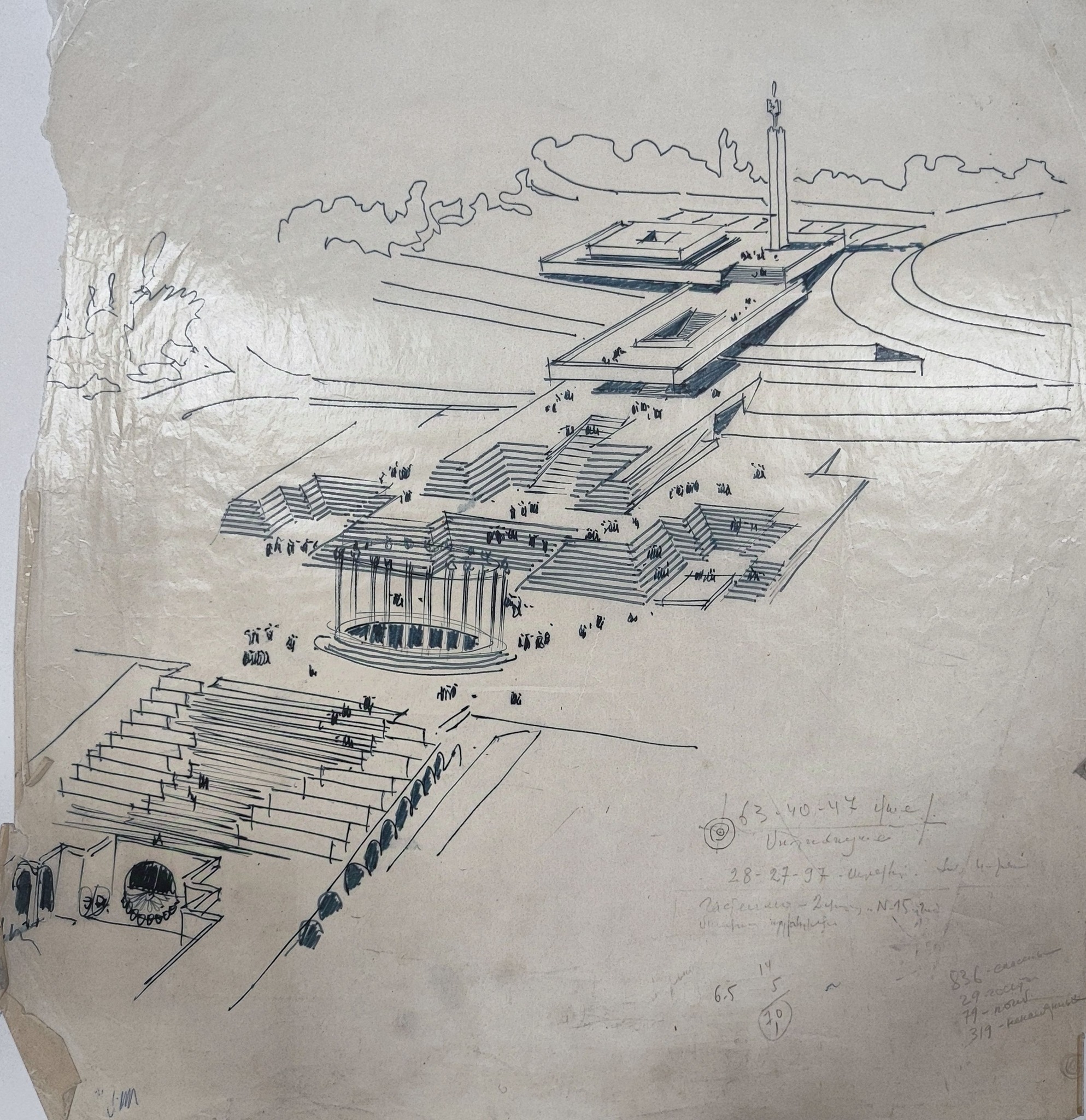 Կասկադի նախնական տարբերակի էսքիզներ՝ նախագծի համահեղինակ Սարգիս Գուրզադյանի արխիվից
