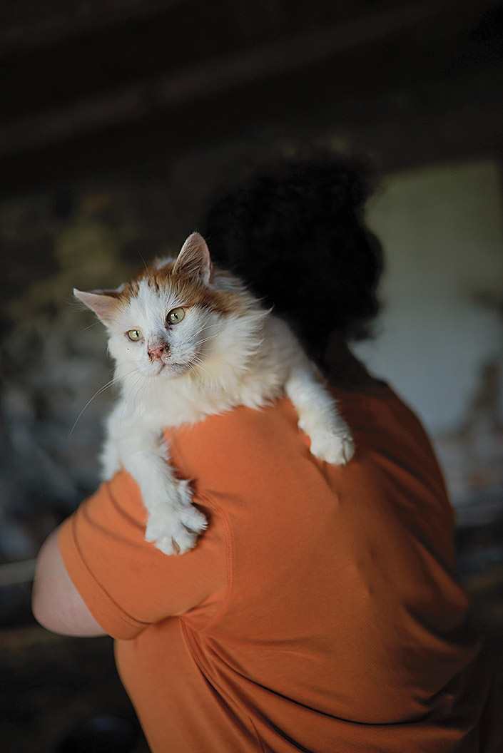 Իրինան զբաղեցնում է իր տեղը պատի տակ՝ նստարանի վրա, կատուները կշտանալուց հետո հերթով գալիս են սիրվելու: