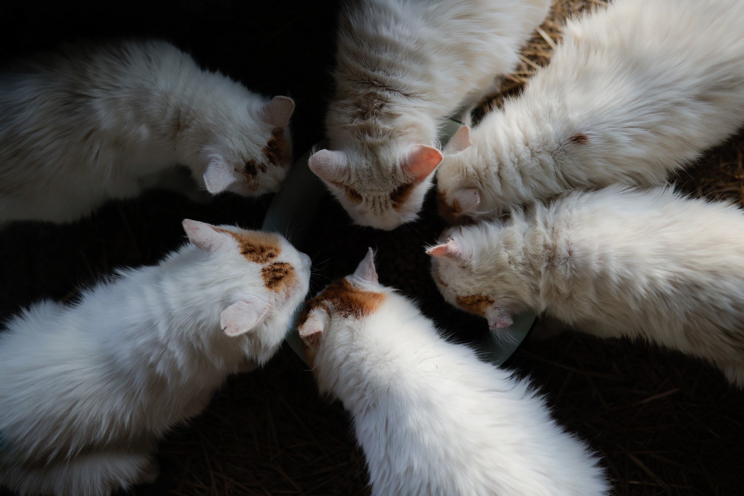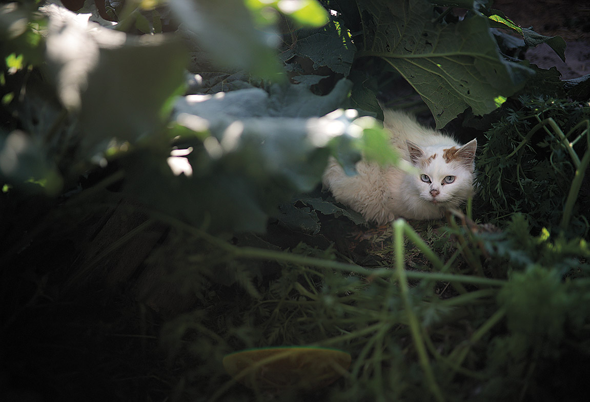 Կատուները հավաքվում են Իրինայի բերած ուտելիքի շուրջ: Միաժամանակ օդ խոյացած 10 նարնջագույն պոչիկները շատ խորհրդավոր տպավորություն են թողնում: