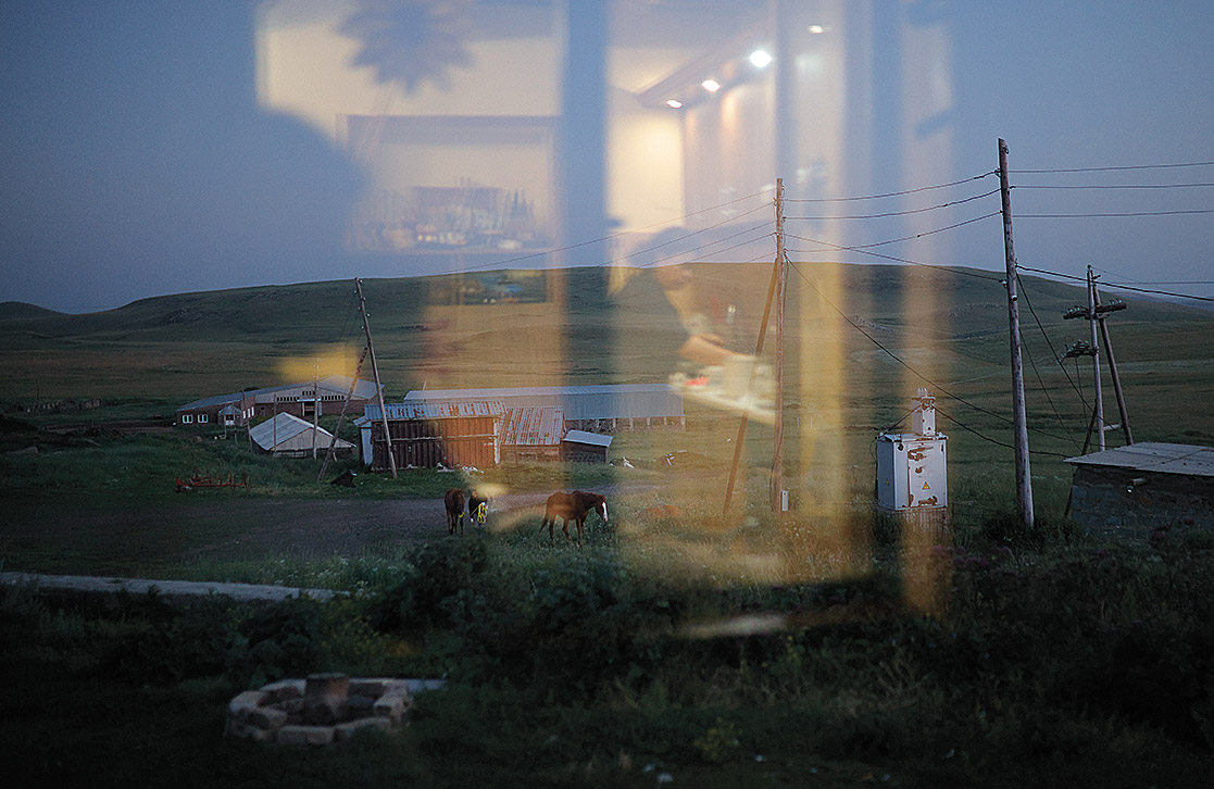 Գյուղի միակ ճանապարհը տանում է ուղիղ Արմենի ու Իրինայի տուն: Տան շեմին նստած զրուցում ենք, դիմացը երևում են մի քանի շինություններ՝ գոմերը, փոքրիկ տնակը, որտեղ ապրում են գյուղի՝ Արմենից ու Իրինայի ընտանիքից բացի միակ բնակիչները՝ նրանց երկու աշխատողները, և հորիզոնից հորիզոն լիքը-լիքը բլուրներ, որ կարծես ստեղծված են ավստրիական շորիկով թռվռալու և «Էդելվեյս» երգելու համար: Իրինան հերթով պատմում է գյուղի շինությունների մասին և վերջում ցույց տալիս հեռվում մի կետիկ: