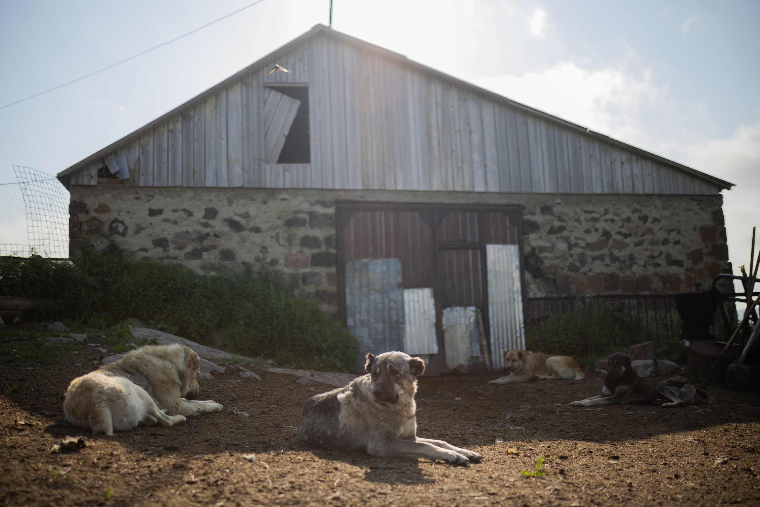 Կատուների տարածքի մուտքի մոտ խաղաղ պառկած՝ հանգստանում են Արմենի գամփռները: