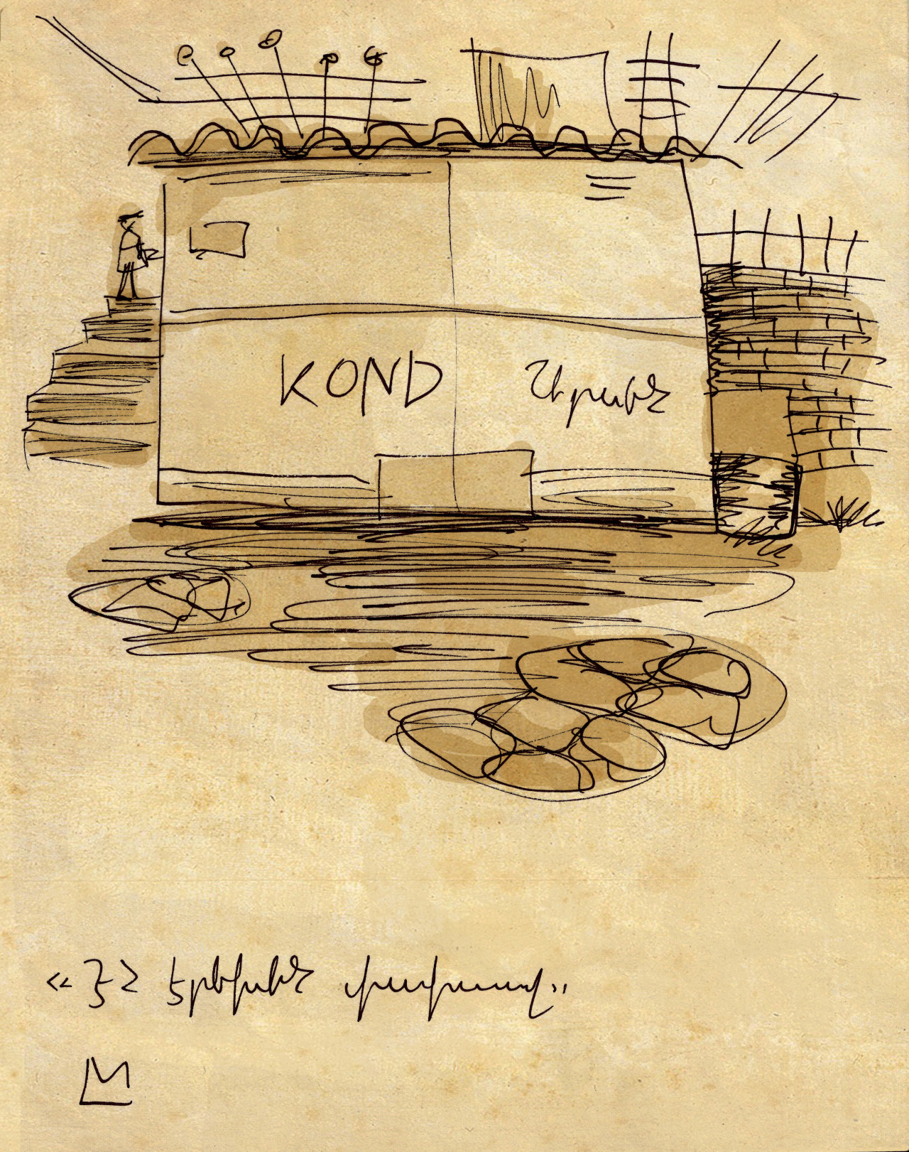 30.09.2022Լիլիթ Մանարյան․ «Lost in Kond-ն առաջինն է եղել ինձ այնքան հարազատ դարձած քաղաքային ճեպանկարների շարքում, որը ես համալրում եմ մինչ օրս։ 2013 թվականն էր, ես ավելի երիտասարդ էի և առաջին անգամ էի բարձրացել Կոնդ (չնայած որ մեր տնից երկու քայլի վրա էր, երբեք այնտեղ չէի եղել)։ Այնտեղ մի երիտասարդ լուսանկարիչ էր աշխատում ու արագ շարժվում առաջ, իսկ ես ունեի միայն թուղթ ու գրիչ՝ տեսածս ջերմ անկյունները հավերժացնելու համար։ Որոշեցի իրենից հետ չընկնել ու իր պես շատ արագ նկարել։ Մեր իմպրովիզացված մրցարշավի շուրջս երեխաներ էին հավաքվել ու ծիծաղելով քչփչում էին, ես էլ ինձ շատ երջանիկ էի զգում, որ արդեն ավելի արագ եմ նկարում, քան ինքն իր կադրն է դնում։ Այդ օրվանից հասկացա, որ ամենաանկեղծ ու ստացված նկարներս ճեպանկարներս են` առաջին արագ տպավորություն, առաջին հայացքից սիրահարվածության պես անկեղծ»։