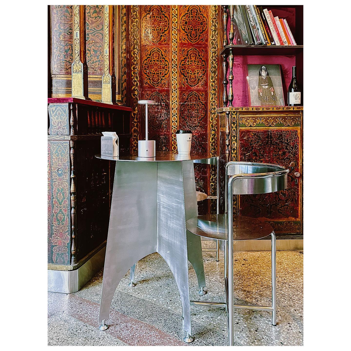 Կահույքի բոլոր նոր տարրերը չժանգոտող պողպատից են։ Նպատակը մեկն էր՝ նրանց միջամտությունը պետք է հստակ տարբերվեր գոյություն ունեցող ինտերիերից։ «Մենք ցանկանում էինք, որ մարդը մտնի և հստակ հասկանա, որ սա հին է, իսկ սա ստեղծվել է արդեն մեր օրերում,- պատմում է Արմինեն, - դա կահուքի նյութը ընտրելիս էլ ենք հաշվի առել։ Այն պիտի ռադիկալ ուրիշ լիներ․ թեթև, եթերային , որպեսզի եղած միջավայրը որպես ֆոն չծառայեր»։
