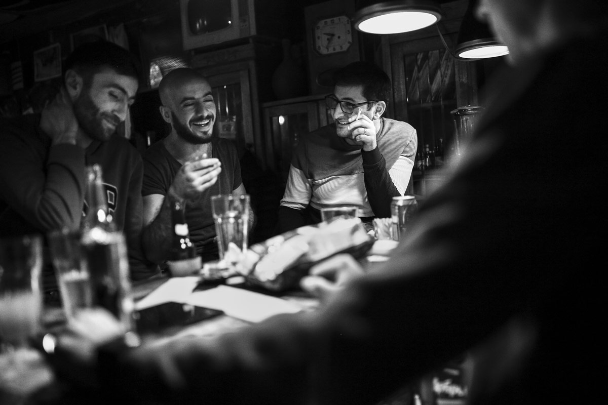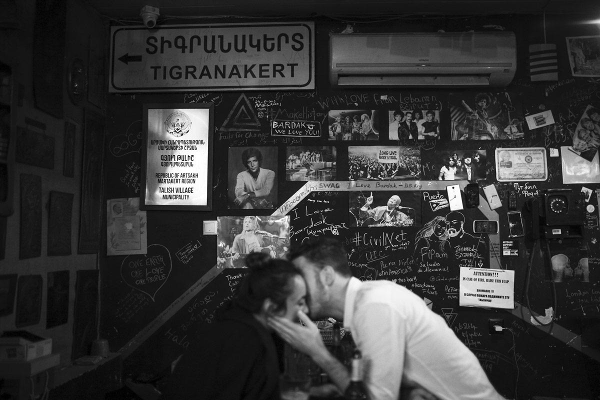 Փաբ մտնողի ձեռքերում հաճախ կտեսնես նվեր-խմիչք, օրինակ՝ շաբաթվա սկզբին բանակի ընկերը Երևանից ուղարկել է «Յագերմեյսթեր», ամբողջ շաբաթ սպասել է, որ ուրբաթ օրը կիսի բարդակցիների հետ: Հարցնում եմ՝ իսկ ֆեյս-քընթրոլի հարցը ո՞նց եք լուծում: Ժպտում է. «Զգացվում է, որ Արցախից չես, այստեղ բոլորը բոլորին գիտեն, ով պետք չի, ինքը չի էլ գալիս»: