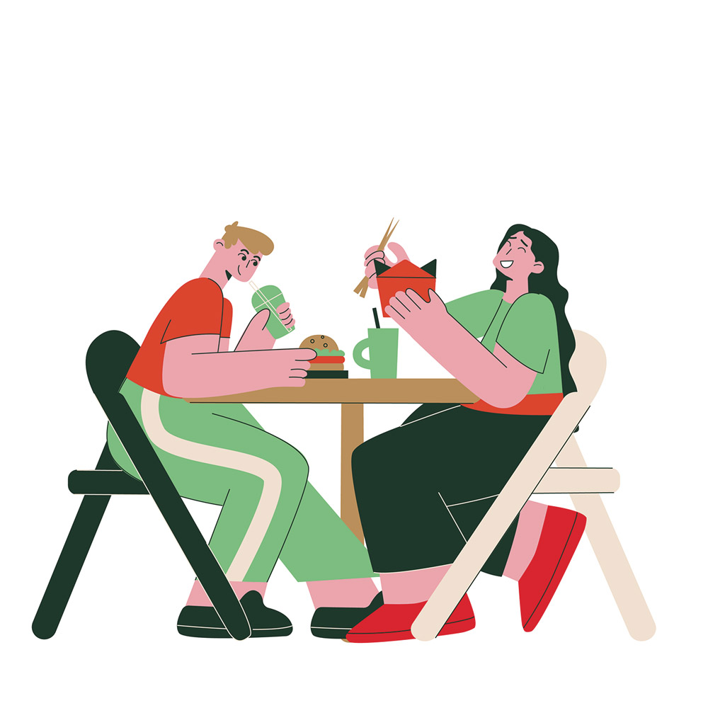 Ասում են՝ ֆուդկորտի տարածքը դատարկ տեսնում են միայն պահակները փակումից հետո։ Այստեղ միշտ մարդիկ կան և ձեր ուզած սեղանը գտնելը՝ մեծ հաջողություն։ Ուստի մինչև դեպի ֆուդկորտ գալը, եթե ձեզ հետ որևէ մեկը կա, նրան ուղարկեք տեղ պահելու։ Երբ ավարտեք ընթրելը, կարող եք երեխաներին մի ժամով ուղարկել մանկական անկյուն, դուք էլ օրվա վերջին աղանդերը վայելեք։ Կարևորը վերջում չմոռանաք երեխաներին վերցնել. ասում են՝ նման դեպքեր հաճախ են պատահում։