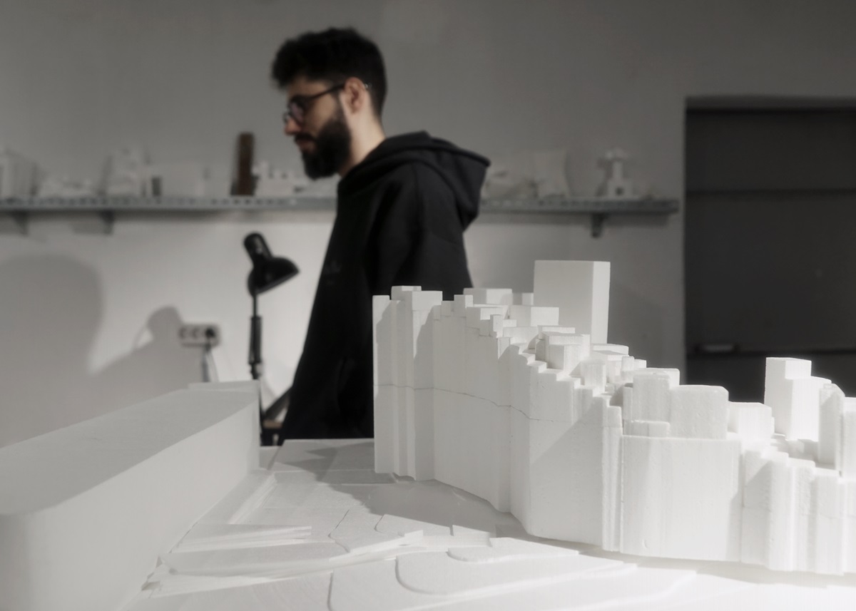 Գաղափար-էսքիզ-պենոպլաստ-մակետ. մեխանիզմը պարզ է։ «Եթե ունեք էսքիզ, լավ է, եթե չունեք, ավելի լավ է»,- ասում է արվեստանոցի համադրող Սաշա Մանուկյանը ու միացնում լարը՝ նույն ինքը foam cutter-ը։ Սկսում ենք պրակտիկ դասը։ Սկզբում գծում ենք լանդշաֆտը, կտրում ու հետո անցնում շենքներին։ Ոգևորությունը գնալով աճում է, քանի որ դիպչելով ու շոշափելով ես մտածում, զգում ես նյութը, փոխում ու նախագծում ուզածդ շենքը։ Թվում է՝ ոչ մի արտառոց բան, նույնը, ինչ պիտի սովորեցնեն ճարտարապետականում։ Միայն թե կինոն դեռ նոր է սկսվում։