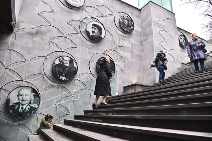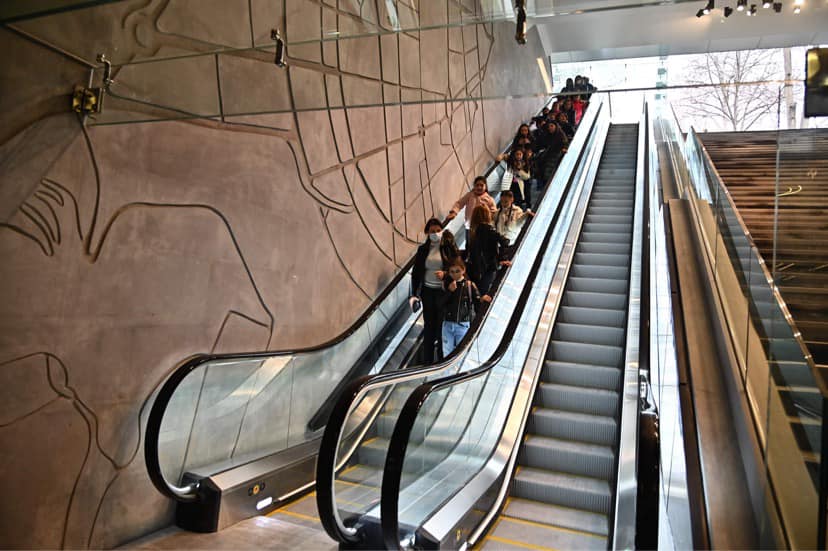 Մի բան, որ միանգամից գրավեց ուշադրությունս՝ հայ մեծերի շրջանաձև դիմանկարներն էին, որ փակցված են աստիճանավանդակի մի կողմի պատին։ Մի քիչ իհարկե անհասկանալի է դրանց նպատակը և ինչու այդ ձևաչափով, հատկապես, որ միայն դիմանկարներն են՝ առանց ուղեկցող բովանդակության, նույնիսկ առանց անուններ նշելու։ Մի խոսքով՝ ցանկացած անհասկանալի իրավիճակում օգտագործի՛ր հայ մեծերի դիմանկարներ։ Իսկ մյուս պատին՝ Երևանի հայտնի ճարտարապետական կառույցների պատկերներով խորաքանդակներ են։ Այն շատ ավելի հաճելի տեսք ունի։ Ինչքան կարող էինք բողոքեցինք ու հասանք ինքն իրեն բացվող դռներին։