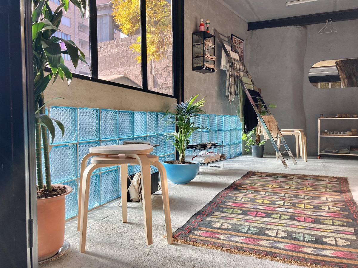 Ալեքսանդրը ստանձնել է վերանորոգման աշխատանքները և ի վերջո ստեղծել մի տարածք, որը ձևավորվել է սուղ միջոցներով, բայց բավական հետաքրքիր է, կոլորիտային և իսկապես առանձնանում է այն բակի մեջ որտեղ գտնվում է։ Երկու լայն ապակե պատերն այդ փոքրիկ խանութը ընդարձակ ու լուսավոր են դարձնում, ցեմենտը թույլ չի տալիս մոռանալ, որ այնուամենայնիվ նախկին ավտոտնակում ես, իսկ ներսում աճող ու առաստաղից վեր ձգվող ծառը փոքր-ինչ մոգական է դարձնում տարածքը։