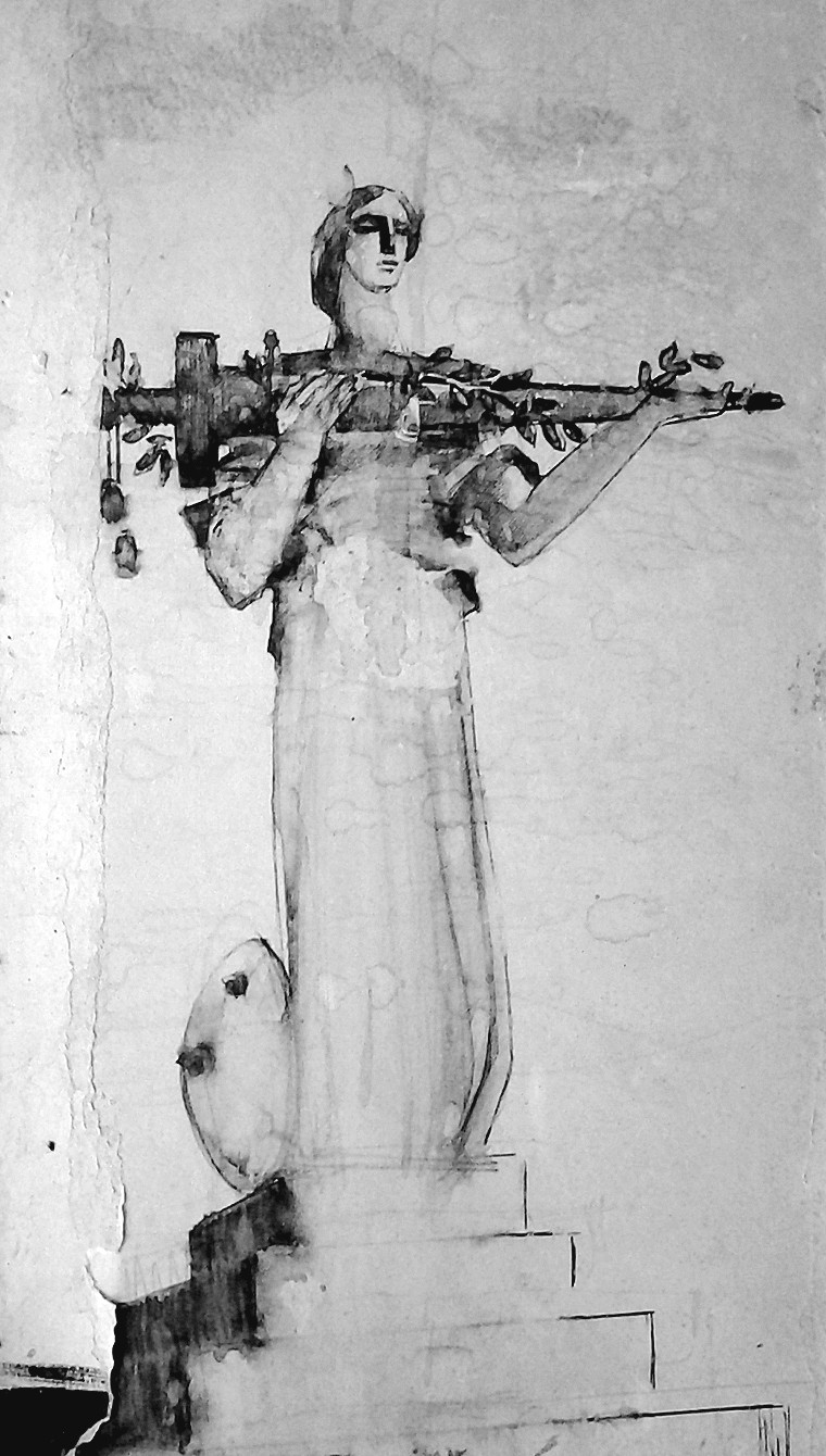 «Մայր Հայաստանի ծավալային կոմպոզիցիան իրենից խաչ է ներկայացնում, ընդ որում՝ թե՛ սկզբնական էսքիզներում, թե՛ բնօրինակում: Վահանը կար, բայց սկզբում կողքից էր դրված»: