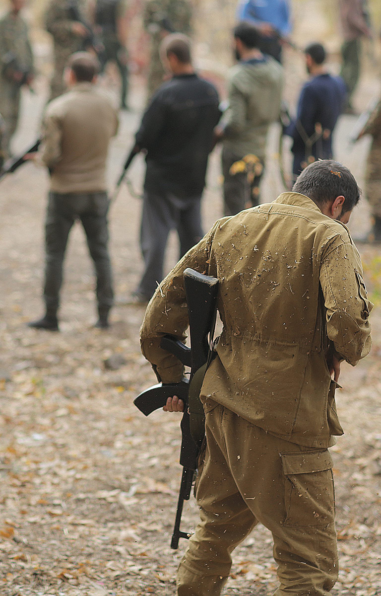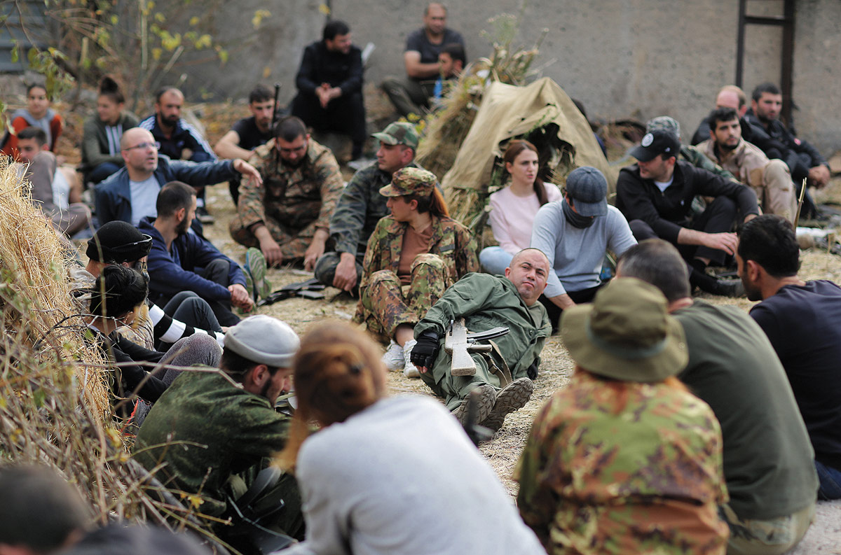 Նրանք, ովքեր արդեն դասը սովորել են, հիմա քննություն են հանձնում։ Մեկ ուրիշ կետում հավաքվում է կուրսանտների մեկ այլ խումբ. գոյատևման դասի ժամն է։ Ընկեր Արամն ակնոցով է, նոր է իջել Արցախի դիրքերից, աչքերն են վնասվել. «Երեկոյան մութը հենց ընկնում էր, էլ ոչինչ չէի տեսնում, 14 օր մնալուց հետո հետ ուղարկեցին, արդեն բեռ էի դարձել իմ ռազմընկերների համար»։ Վիրավոր աչքն ընկավ հեռախոսիս պատյանին. «Կանաչի այս երանգը շատ եմ սիրում։ Ռազմական է։ Բայց պատերազմ չեմ սիրում, սեպտեմբերին առաջին գնացողների անունները կարդալիս Աստծուն խնդրում էի նույն ցանկը հետդարձին էլ կարդալ»։ Այդ 14 օրերից հիշում է միայն հոսպիտալում պատգարակների վրա չորացած արյունը, որն ամեն առավոտ մաքրում էին սանիտարները։
