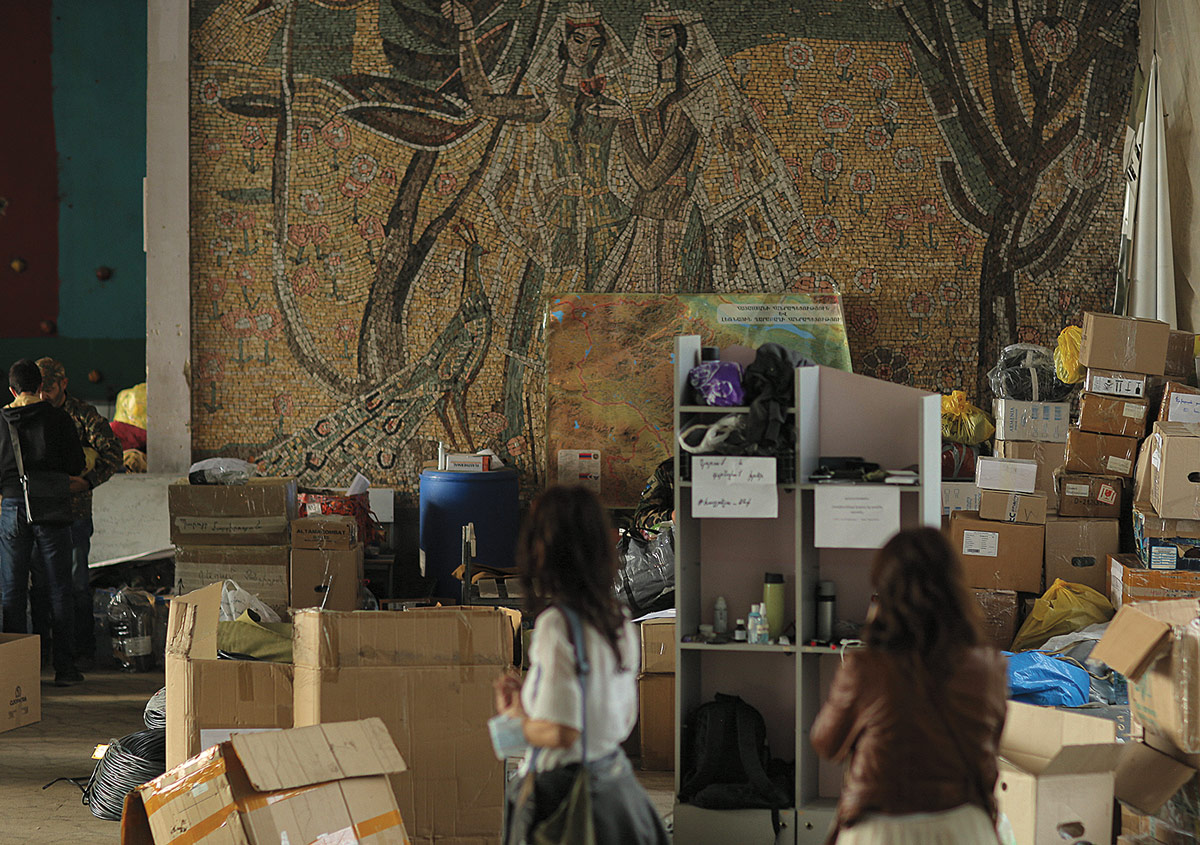 Անկյունում մի նիհար, վառվող աչքերով աղջիկ էր կանգնած։ Իրինան էր, արդեն 14 օր հաճախում էր ՈՄԱ-ի կուրսերին. «Սպասում եմ ՊՆ-ն հրամանս տա՝ գնամ, աղջիկ կամավորների համար նրանց թույլտվությունն է պետք։ Ես քաղաքացիական կյանքում դերասանուհի եմ, բայց հիմա դուրս ենք եկել մեր ստերիլ պայմաններից, ուրիշ տարբերակ չունենք»։ Լռում ենք։ Ավելացնում է. «Բայց ՈՄԱ-ն պատերազմի մասին չէ, այլ ապրելու, ողջ մնալու ...»։ Անկյունում կամավորներն անհատական դեղատուփեր են հավաքում զինվորների համար։