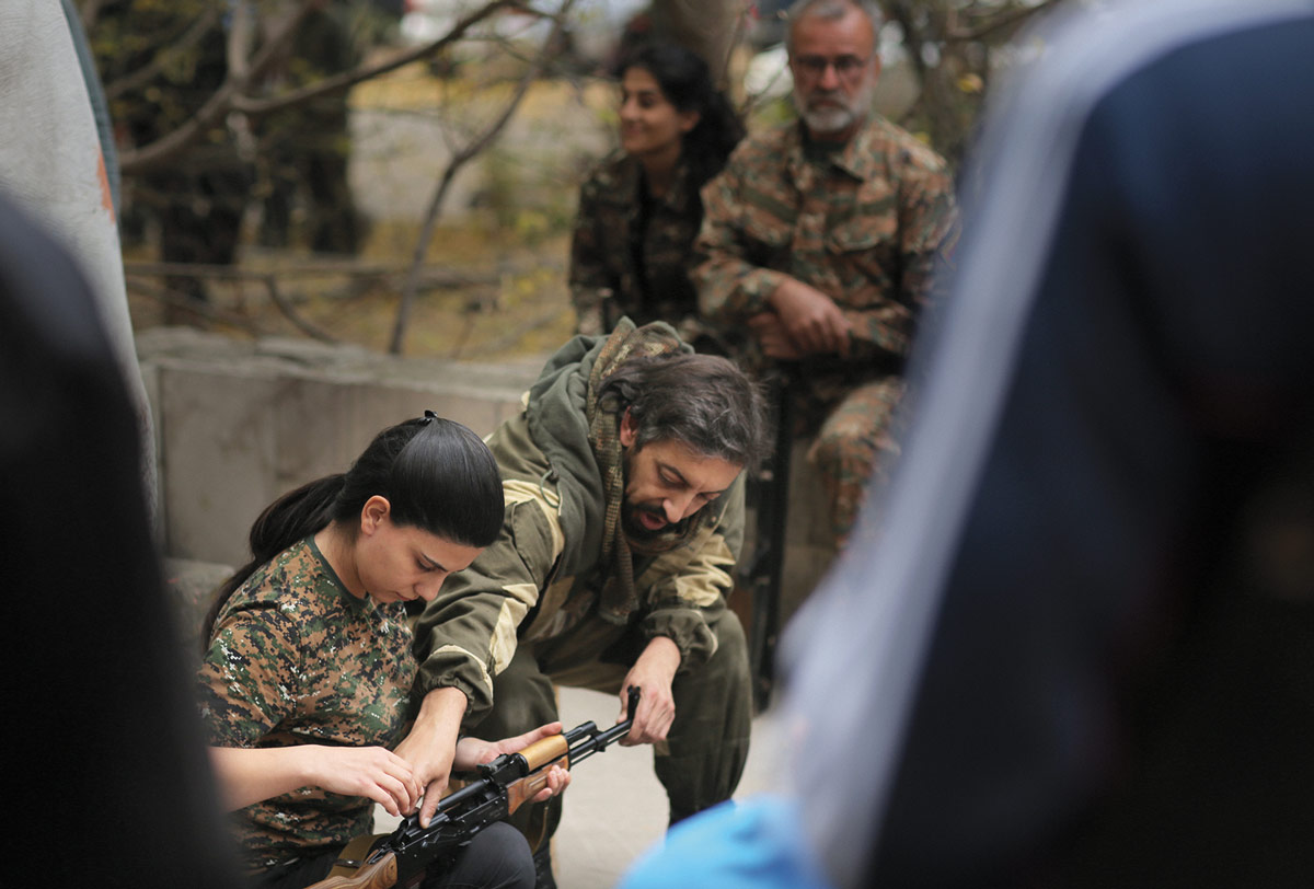 Նորք-Մարաշ, Արմենակյան 121/7 հասցեում գտնվող «Նաիրի» հյուրանոցի հետնաբակը մարդաշատ էր։ Ահռելի տարածքը բաժանված էր առանձին հատվածների, շատ էին զինվորական համազգեստով տղամարդիկ։ Մուտքի մոտ հրացանն արագ հավաքելու, լիցքավորելու դասն էր, կենտրոնում նստած տղամարդը ծանոթացնում էր զենքից օգտվելու կանոններին, շուրջբոլորը հավաքվածներն ուշիուշով հետևում էին նրա ձեռքերի շարժումներին։ Մի քանի րոպե սառած, ապշած կանգնեցինք. ինչ մեղքս թաքցնեմ, ես կյանքում զենք չէի էլ տեսել։ «Իմ զենքն իմ գրիչն է» կարգախոսը ժամանակավրեպ թվաց։ Պարզվեց՝ իրական զենքը ծանր է, ու մի քիչ էլ անհարմար։ «Աջ կրակ, ձախ կրակ, մարտի...». թիկունքից լսվող հրահանգները ստիպեցին շրջվել։
