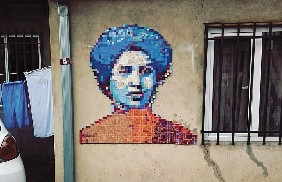 Արդեն մոտ երեք տարի շարունակ Երևանի փողոցներում հայտնվում է անսովոր սթրիթ-արտ՝ պիքսելային խճանկարներ. գնդեր, էմոջիներ, գրություններ ու նույնիսկ դիմանկարներ։ ԵՐԵՎԱՆը պարզել է, որ դրանց հեղինակն արվեստագետ Սիրանուշ Աղաջանյանն է ու եղել այն արվեստանոցում, որտեղ ստեղծվում են խճանկարները։