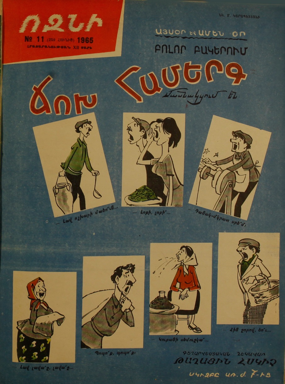 Հայկական գլխավոր երգիծական հրատարակությունը՝ «Ոզնի» հանդեսը, լույս էր տեսնում 1954 թվականից։ Ինչպես նշվում էր խորհրդային հանրագիտարաններում, «Ծաղրի զենքով պայքարել է խորհրդային և նոր հայ իրականությանն անհարիր երևույթների դեմ, ծանակել բյուրոկրատներին, պաշտոնամոլներին, բանսարկուներին, օրինազանցներին և այլն»։ Ներկայացնում ենք հանդեսի շատ խոսուն շապիկներից մի քանիսը։
