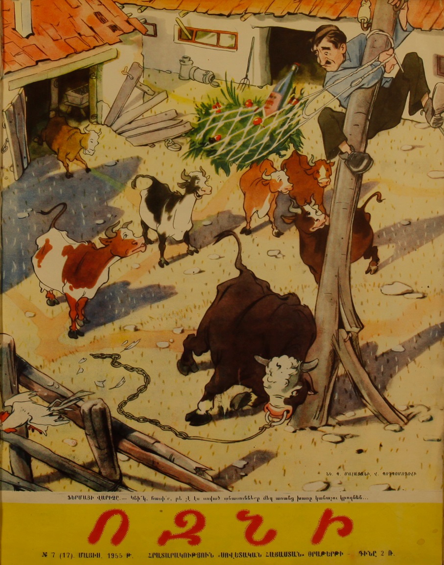 1955. Ֆերմայի վարիչը․ - Կնի՜կ, հասի՜ր, թե չէ էս սոված անասունները մեզ առանց խառը կանաչու կթողնեն․․․